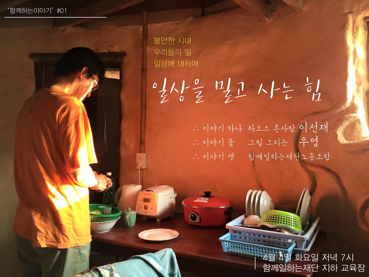 기금 이야기를 주고받던 몇 번의 만남 중에, 라오스의 탐디 (이선재 선생님)와 만나는 자리가 있었다. 라오스에서 일상을 꾸리며 바라 본 한국사회와 청년, 시대를 걱정하는 이야기를 들려주었다. 한국이 언제 가라앉을지 모르는 지금, 모인 사람들은 그래도 사람에게 희망을 본다고 했다. 이날 자리의 제목이 ‘일상을 밀고 가는 힘’이었다. 나는 일상을 밀고 '사는' 힘으로 알아들었지만, 가는 힘과 사는 힘, 둘 다 일상에 소중하다. 이날, 참 진부한 말이지만 그래도 이 시대안에 ‘사람’이 남아있음을 보았다.