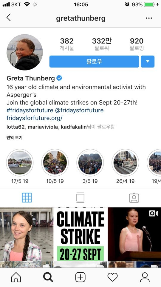 그레타를 조사하면서 계속 맴도는 생각이 하나 있다. 만약 그레타가 한국에 태어났다면 어땠을까? 아스퍼거 증후군 청소년이 학교를 빠지고 국회 앞에서 기후변화 대응 시위를 했다면 한국 사회는 어떻게 반응했을까? 그레타 같은 아이가 같은 반 친구들에게 학교를 빠지고 국회 앞에 가서 시위를 하자고 했다면 따라나서는 아이들이 몇이나 있을까? UN 총회 발언 이후 스웨덴 청소년들은 그레타가 자기들의 의견을 속시원히 대변해 주었다며 들뜬 듯 보였다.