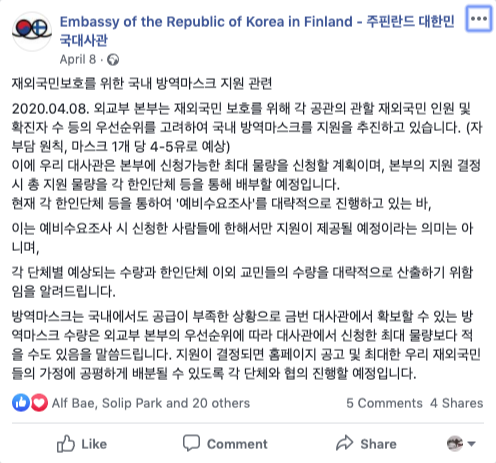 재외국민을 위한 주핀란드 대한민국 대사관 마스크 구매기 by TJi