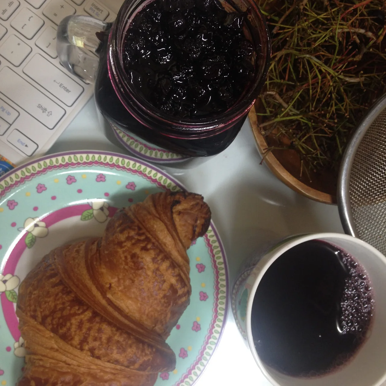 갓 만든 잼으로 빵에 발라 한 조각 먹고,