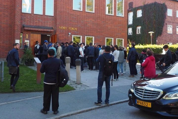 2015년 노벨 생리의학상 발표 현장의 소식을 전하기 위해 재빠르게 캐롤린스카 의대 발표장인 노벨 포럼 건물에 왔습니다. 건물 바깥에는 수상 소식을 빨리 알고 싶어 하는 무리가 초조하게 기다리고 있었습니다. 뭐 과학도들에게 뭘 기대하겠습니까만 바쁜 와중에 슬쩍 봐도 멋이라고는 찾아볼 수 없는 옷차림의 사람들이었습니다.