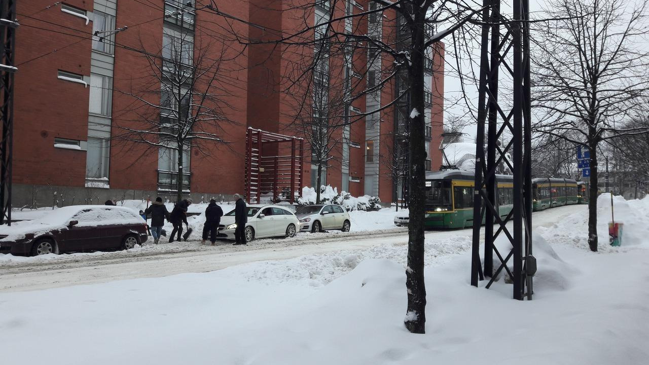 TJi가 사는 동네는 트램 6번과 8번의 종점인 아라비안란따다. 트램 종점이라 대체로 트램에 승차해서 출발을 기다려서, 유명한 핀란드의 정류장 사진처럼, 사람들이 정류장에서 기다리는 모습을 보기는 어렵다. 그런데, 종점에서 1월 말 그 신기한 모습을 직접 보게 되었고, 그 대열에 잠깐 끼기도 했다. 헬싱키의 대중교통은 시간표대로 잘 운행되는 편이다. 사람 사는 세상에 항상 대중교통이 시간 맞춰 운행되는 것은 불가능한 일이다. 그래서 가끔 트램이 종점까지 운행하지 않을 때가 있다. 시간표보다 너무 뒤처지게 되면 트램이 아라비아 지역으로 진입을 하지 않고, 그전에 방향을 틀어 운행한다. 아라비아 지역의 다섯 정류장을 건너뛰고 운행하는 것이다. 그래서 가끔 오지 않는 트램을 기다리다 다음 트램을 타게 돼서 약속에 10분 정도 늦을 때가 있다.