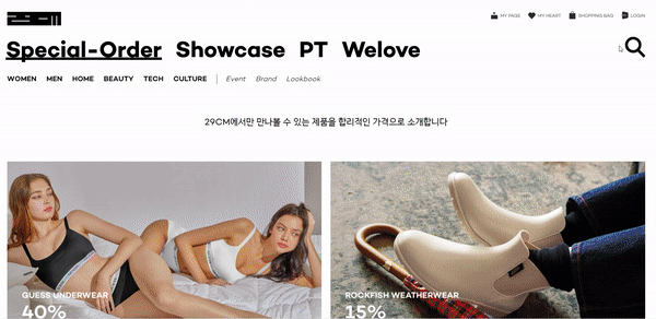 29cm에서는 상품군 설정 없이 색상 키워드를 입력하면 해당 색상과 관련된 상품을 모두 확인할 수 있다.