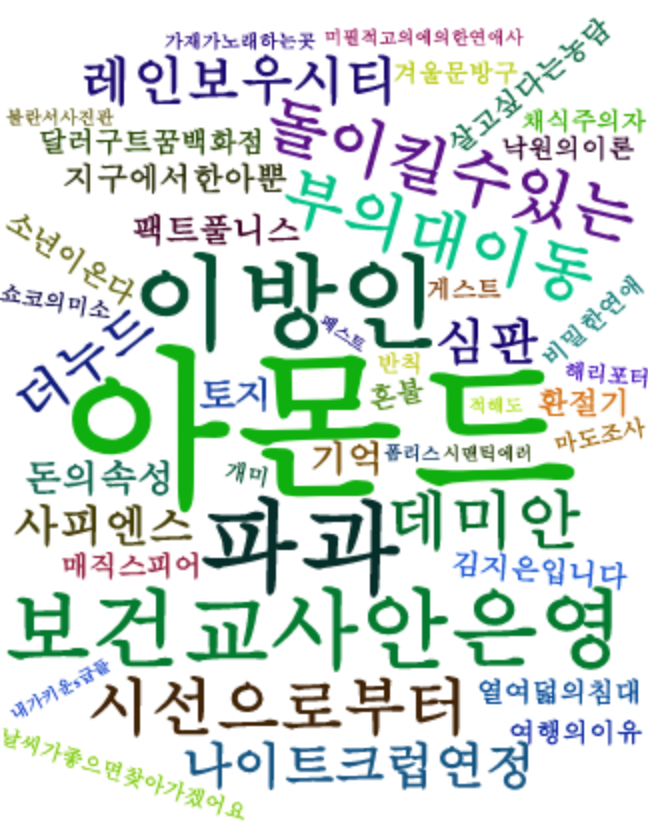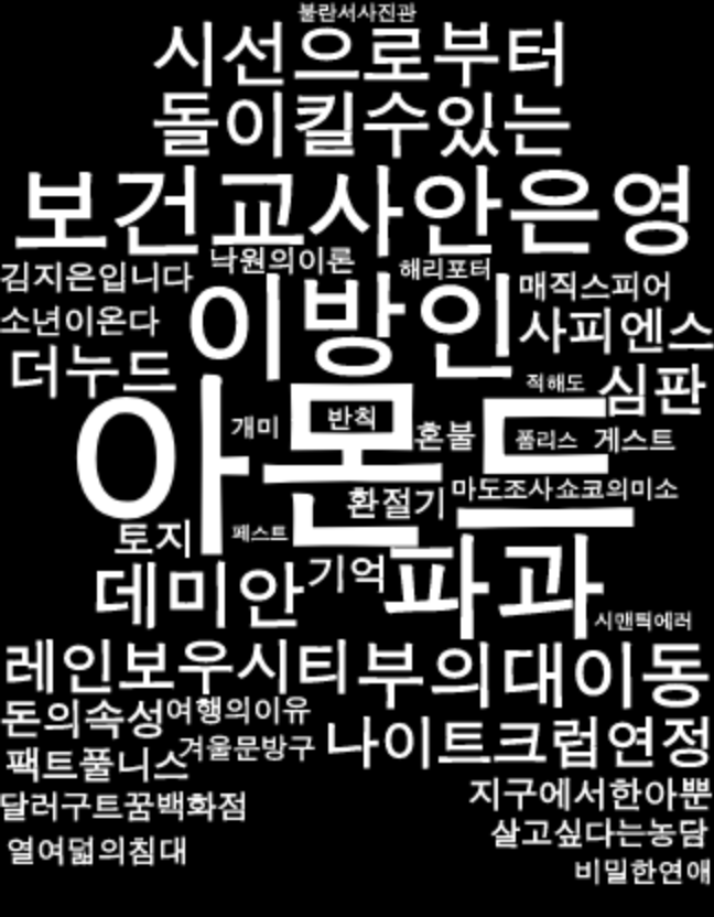 이렇게 별모양 같지 않은 별모양 워드 클라우드가 나왔다.
