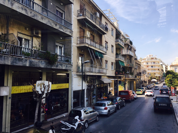 버스를 타서 펀칭을 하고나니 한시름 놓았다. 혹시 버스에 소매치기가 있진 않을지 사람들이 승하차 할 때마다 걱정이 되었지만 가방도 짐도 철통수비 중인 내가 할 걱정은 아니지 않나 싶었다. 누가봐도 아테네에서 나는 낯선 곳에 똑 떨어진 쫄보여행자였다. 어느 것 하나 힘이 들어가지 않은걸 찾기 힘들 정도로 바짝 긴장한 이 초보여행자의 사지와는 별도로 눈은 정신없이 창 밖의 아테네 풍경을 살폈다. 건조한 건물들이 듬성듬성 있었고 조명도 간간히있는 길거리엔 행인이 별로 없었다. 나와 아테네와의 첫 만남은 이렇게 긴장 속에 진행되고 있었다.