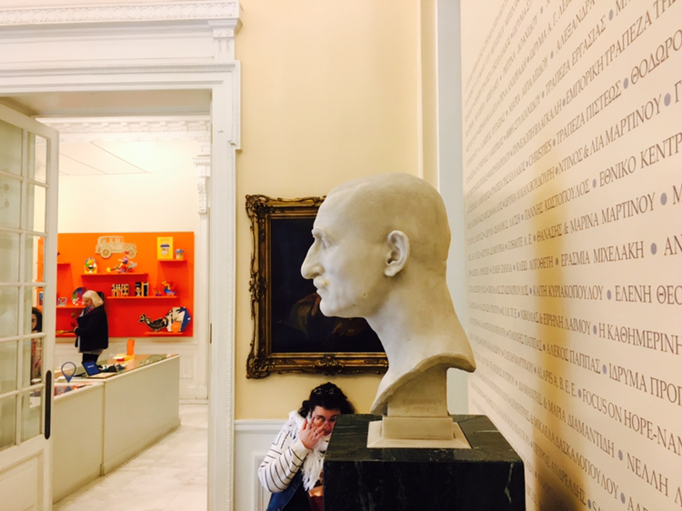 그들을 지나 베나키 박물관에 들어간다. 박물관 건물도 베나키 가문의 저택을 개조하여 사용 중이다. 건물 전체적으로는 아담하고 아기자기한 면이 있지만 내부는 상당히 넓은 편이었다. 티켓부스에서 매주 목요일은 무료로 자정까지 오픈한다는 이야기를 들으니 이따가 아낀 돈으로 맛있는 걸 사먹어야지(이요후!) 하는 생각이 들었다.