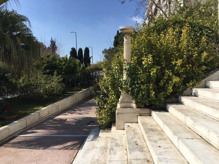 베나키 박물관 사거리에서 나와 아랫길로 계속 내려오면 올림픽 경기장이 모습을 드러낸다. 경기장으로 가는 길목에 오렌지 나무가 탐스럽다. 가로수로 심어둔 거라 맛은 없다지만 싱그러움이 길거리 곳곳에 머문다. 가면서 길거리 구경을 한다. 한적하다 못해 적막이 감도는 이 곳엔 그리스의 대통령과 주요 인사들이 거주하는 모양이었다. 관공서일수도 있고... 내가 그렇게 추측했던 이유는 건물 곳곳에 군인이 배치되어 집 앞을 지키고 있었기 때문이었다. 그리고 건물 맨 꼭대기에는 그리스국기가 펄럭이고 있기도 했으니 내 추측에 점점 더 확신을 가질 수 밖에 없었다.