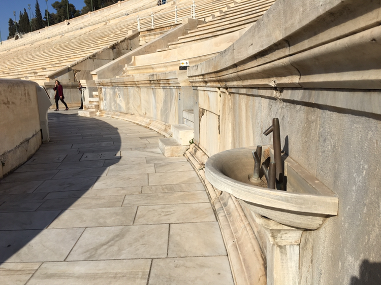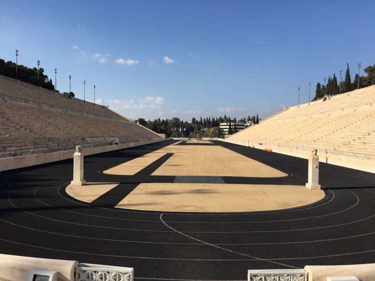 그렇게 골목길을 구경하며 내려오니 내 앞으로 탁트인 경기장이 모습을 드러낸다. 아, 크다. 이 곳에서 최초의 올림픽 경기가 진행 된 줄 알았는데 착각이었다. '고대올림픽경기장'은 그리스의 엘리스(펠로폰네소스반도)라는 지역에 있고, 이 경기장은 제 1회 올림픽이 열린 장소였다. 나는 그것도 모르고 '아... 대단하다. 고대의 사람들은 어떻게 벤치를 깎고 만들어서 거대한 건축물을 제작할 수 있었을까.' 라고 생각했으니 모르는만큼 생각은 부족하기 마련이다.