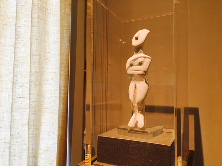 선사시대와 고대 그리스의 유물들이 전시된 곳으로 먼저 들어가본다. 전시관 입구에 있는 안토니우스 베나키의 두상 조각이 먼저 관람객을 반긴다. 그를 뒤로하고 전시관에 들어가면 키클라데스 문명 시대의 유물 한 점이 보인다. 빌렌도르프의 비너스보다 슬림하고 뽀얀 이 여성조각상은 기원전 2600년경 키클라데스에서 제작되었을 것으로 추측된다.