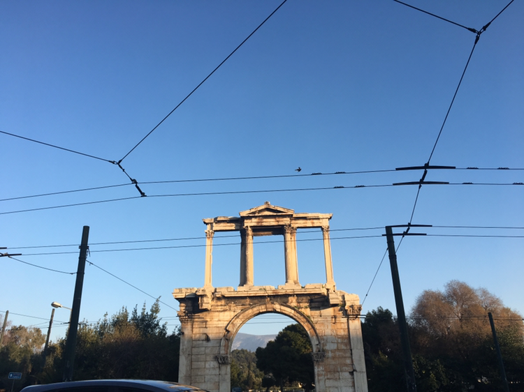 거하게 음식을 먹고나서 숙소 셔틀버스가 있는 신타그마광장으로 소화도 시킬 겸 걸어간다. 수블라키가 생각보다 양이 많았다. 한국에서의 수블라키를 생각하고 샐러드까지 시켰으니 배부른 것은 물론이요, 등이 열릴 것만 같았다. 가는 길에 하드리안의 문을 바라본다. 로마황제였던 하드리아누스가 방문한 것을 기념하여 이 문이 생겼다. 당시 그리스인과 로마인의 지역을 구분하는 문이었는데 지금 보면 1900년동안 서 있다는게 신기할 정도다. 탄탄한 기둥이 구조물을 잡고 있는 것도 아니고 장정 여럿이 툭 밀면 넘어갈 것 같이 생겼으니 말이다.