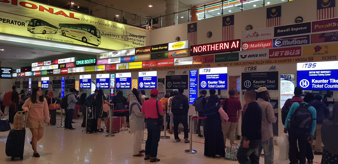 안내판에는 딱히 친절한 안내가 없어 창구를 잘못 찾아갔다가 안내원의 도움으로 말라카 버스 티켓을 구입할 수 있는 곳에 줄을 설 수 있었다.