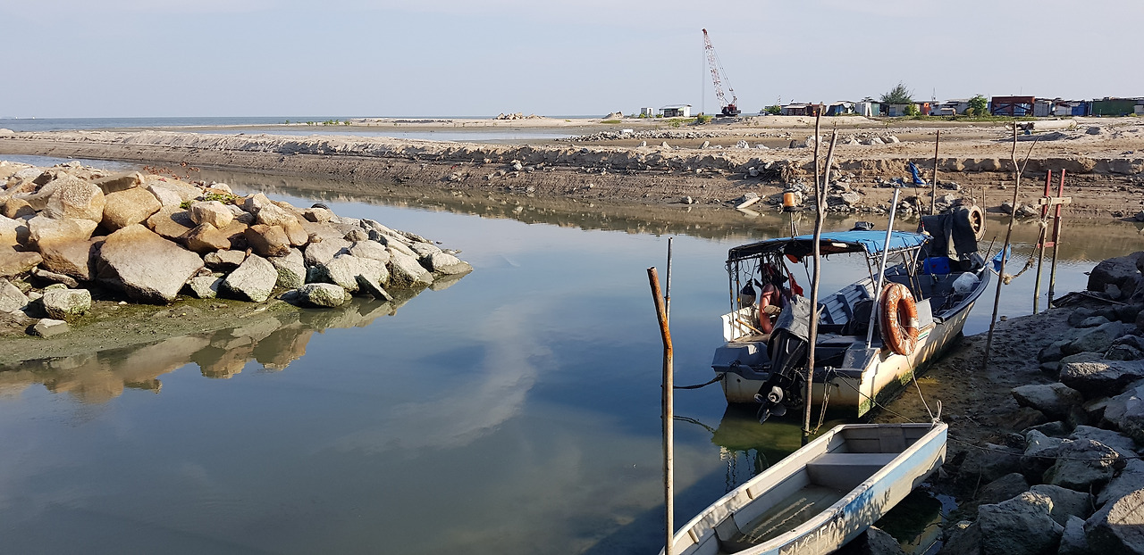 바닷가 길 끝에는 공사현장 입구 근처를 끝으로 도로가 막혀 있었다.