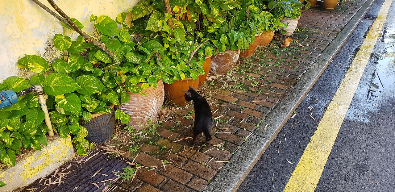 새끼 냥이 한 녀석이 아침 산책을 나왔는지 주변을 두리번거리며 돌아다니고 있었다.
