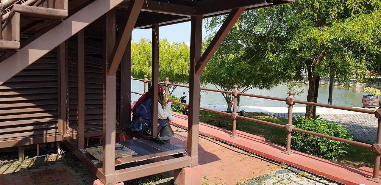아마도 <캐리비안의 해적> 콘셉트로 안내를 해주는 사람인 듯한데 구석에서 잠시 끽연을 즐기고 있었던 것을 마네킹으로 착각했었다.