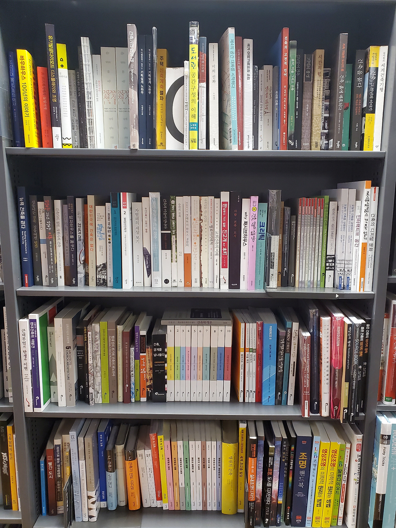 우연히 건축 관련 책을 보다 관심이 끌어 오른 나는 건축학 관련 서적이 꽂힌 곳으로 이동했다. 잘 알지도 못하는 분야면서 다 읽고 싶은 충동을 느꼈다. 게다가 다 사고 싶어 졌다. 다른 사람들은 어떤지 몰라도 난 고등학생 때부터 줄곧 읽고 싶은 책은 무조건 사서 보는 게 원칙이다. 물론 지인 집이나 사무실에서 맘에 드는 책을 발견하면 강탈해오는 방법을 강행하기도 한다. 책 자체에 대한 욕심이 있었던 거다.