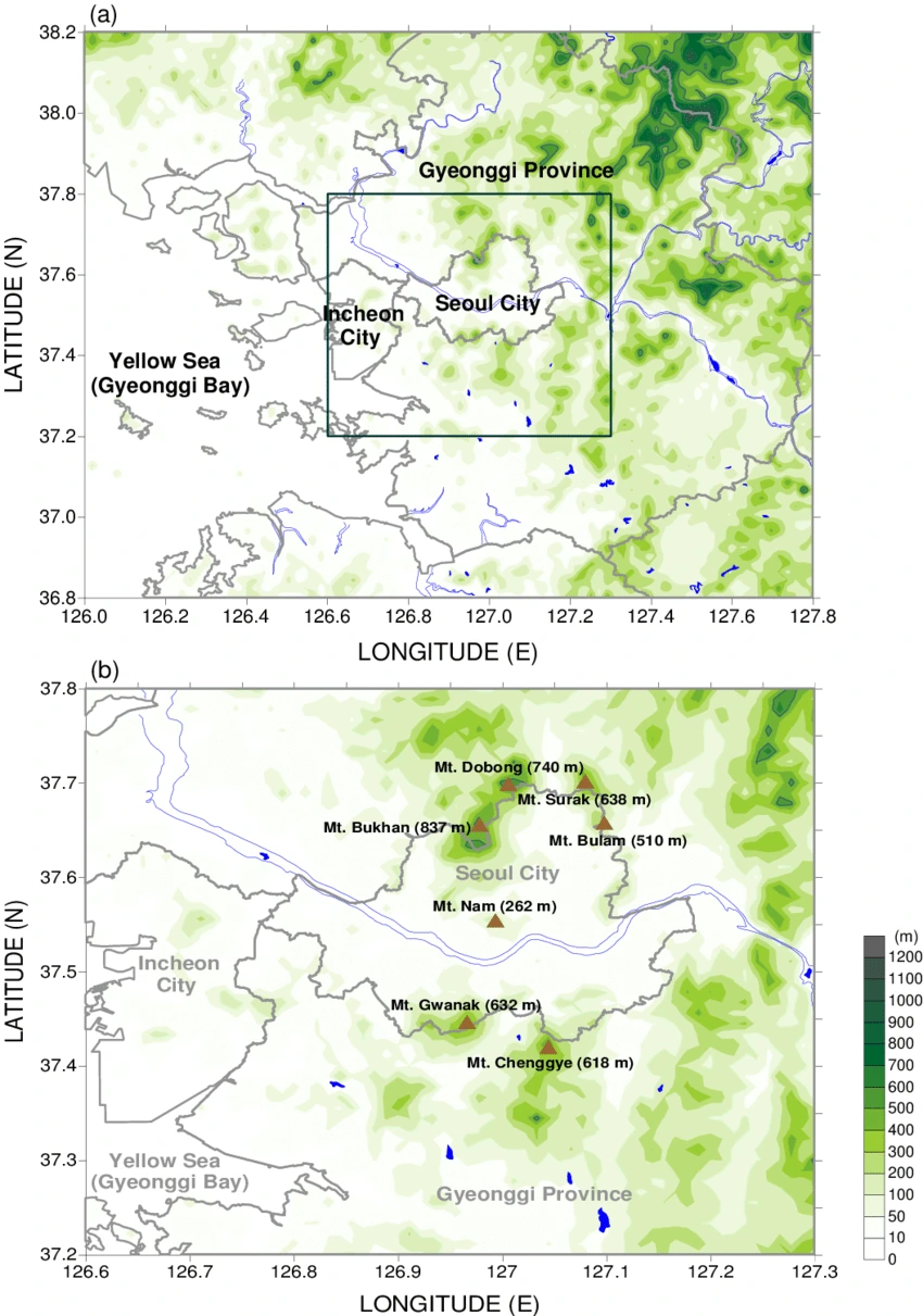 이건 서울 지형도이다. 대표적으로 산다운 산이라고 할 수 있는 북한산, 도봉산, 수락산, 불암산, 남산, 관악산, 청계산이 있고 정말 동네 뒷산 급의 망우산, 아차산, 용마산, 백련산, 안산 등 300미터 급의 산들이 제주도 오름처럼 여기저기 봉긋봉긋하다. 서울 아니라 대한민국 어느 도시에 가도 주변에 산 아닌 곳이 없다. 게다가 한강 면적도 무시할 수 없다. 서울시 구역 안에서 한강은 6.6%를 차지하고 있다. 결국 산 빼고 한강 빼면 쓸 만한 평지가 별로 없다는 것이다.