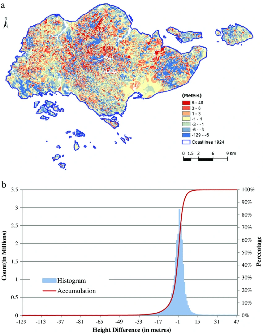 - 싱가포르는 산이 매우 낮고 평지가 대부분이다.