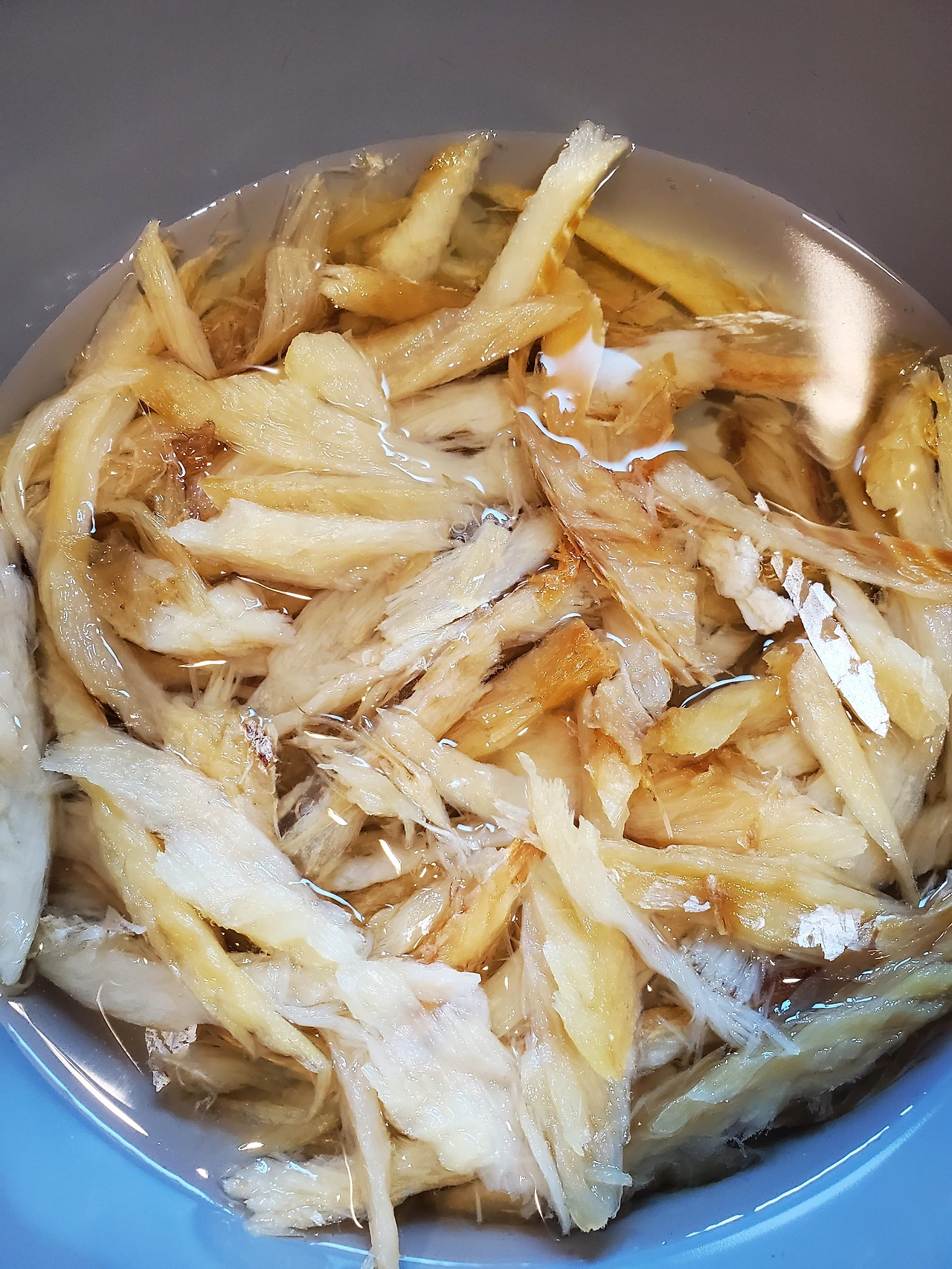 점심시간을 30분 앞두고 드디어 요리를 시작했다. 압력밥솥은 11시 50분으로 예약을 해둔 상태라 바지런히 움직이면 12시엔 식사를 시작할 수 있다. 우선 커피 내리러 탕비실에 갔다가 미리 불려둔 황태의 상태를 점검했다. 물을 잔뜩 머금어 탱탱 불어 터진 황태가 비릿하며 고소한 향을 내뿜고 있었다.