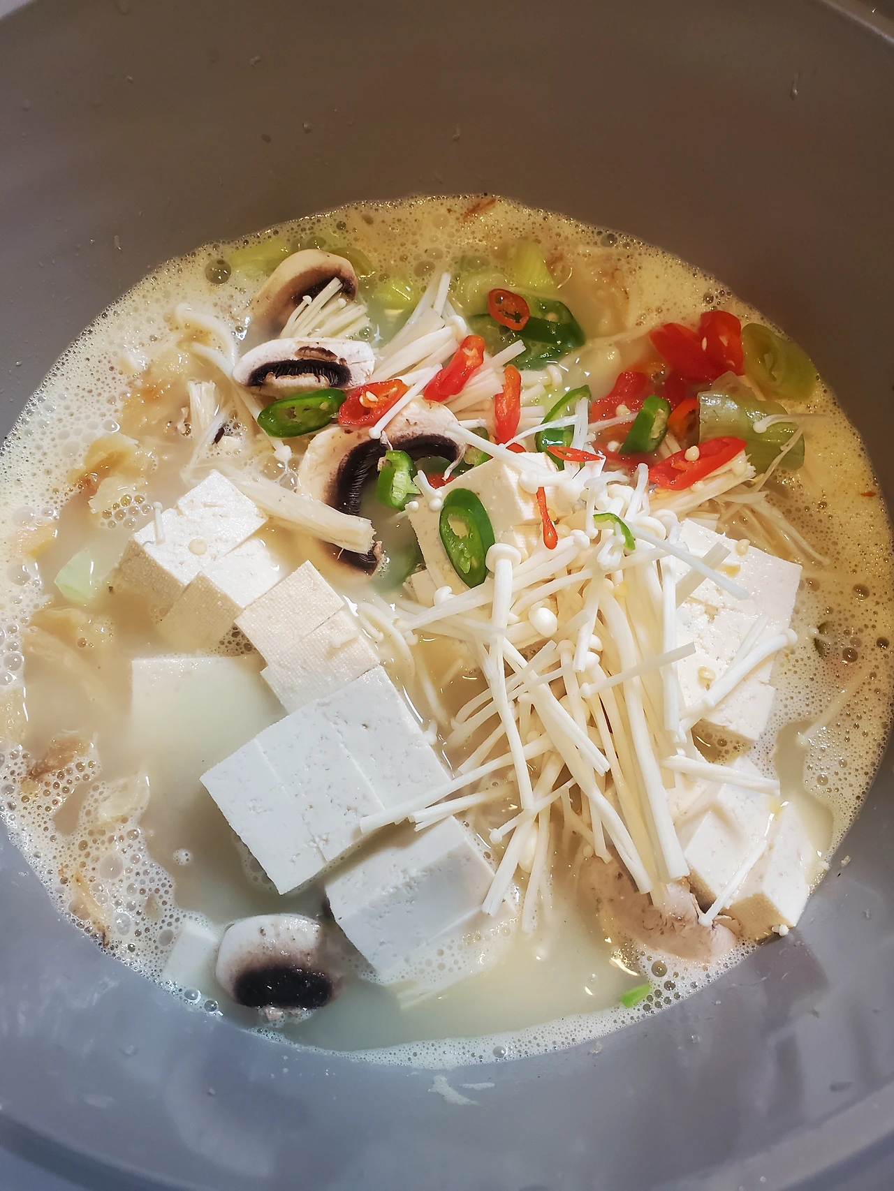 두부까지 각을 내서 썰어 투척한다. 순서 같은 건 없다. 어차피 난 대단한 요리사가 아니니까. 그냥 우리 식구들 맛나게 배 불리면 임무는 완수되는 거다.