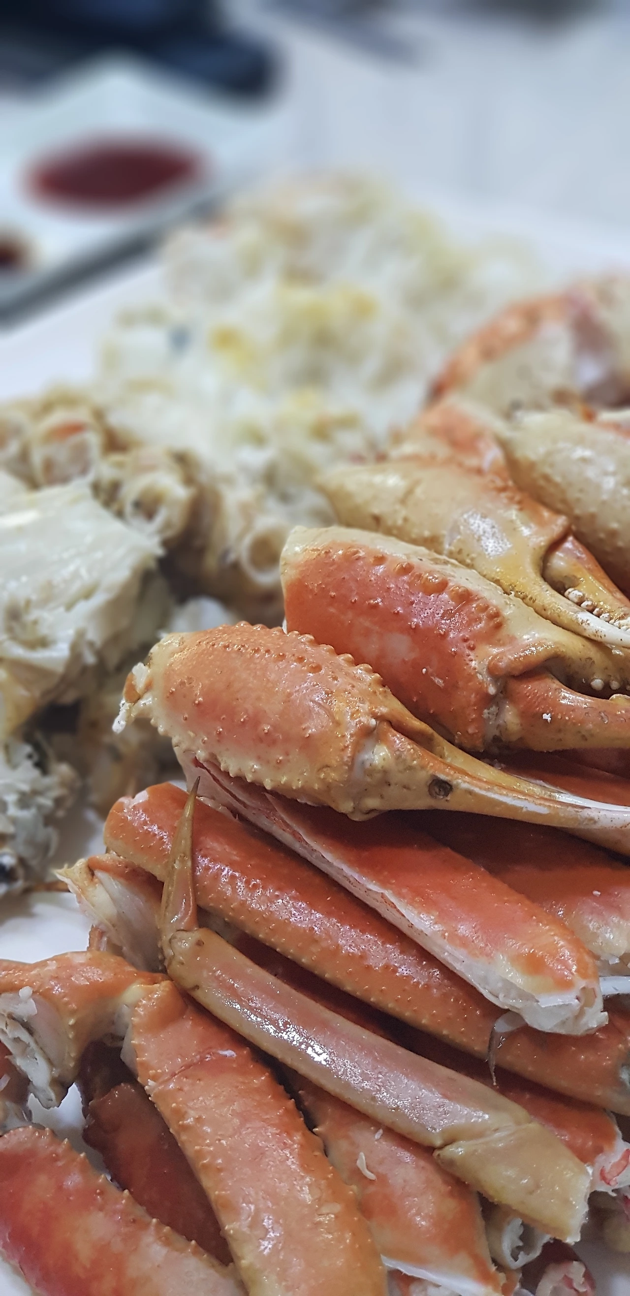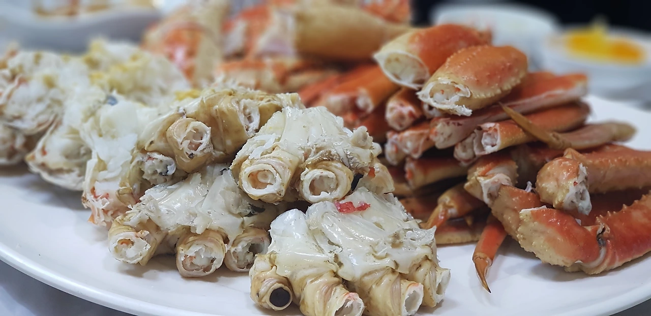 십여 분이 지나자 드디어 주문한 대게가 상 위에 올려졌다. 김이 모락모락 올라오는 것이 침을 고이게 했다. 역시 대게는 수율이라던데 여기 대게는 어떨까 싶었다. 일단 비주얼은 합격이다. 삐져나온 속살을 보니 살이 여간 빽빽한 게 아닌가 싶다. 일단 대게 전문점이니 찌는 수준이야 따질 것도 없을 거다. 대게는 얼마나 제대로 쪘느냐에 따라 맛이 다른 법이니까.