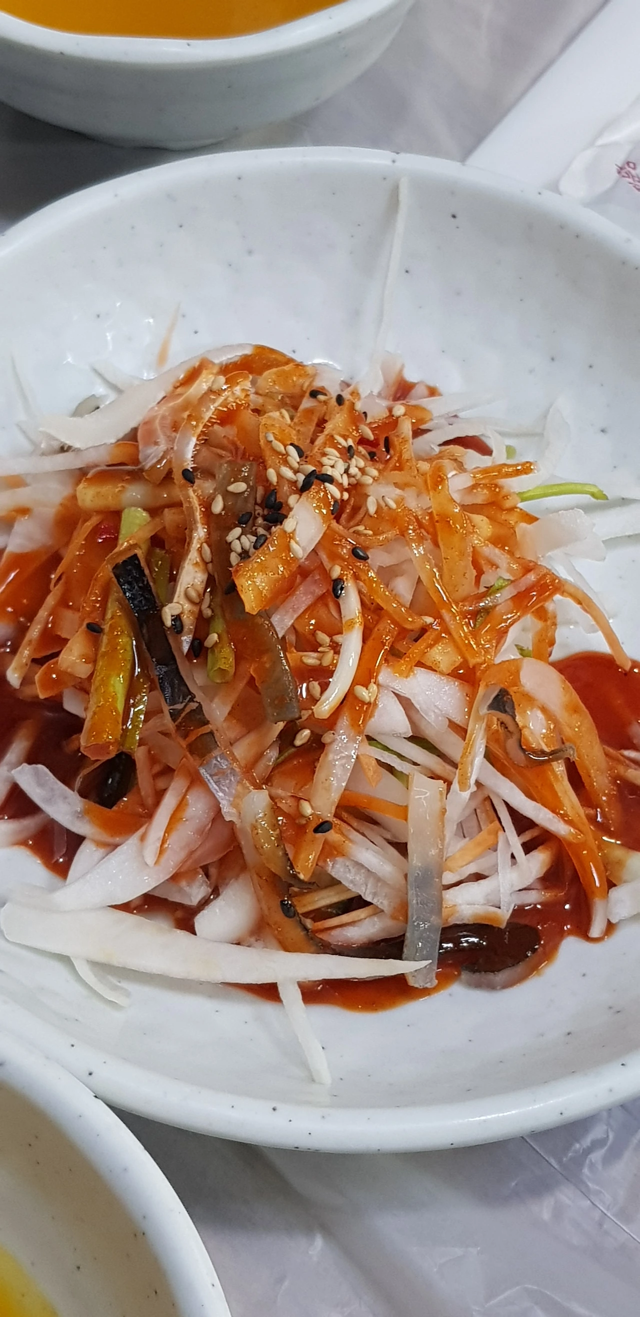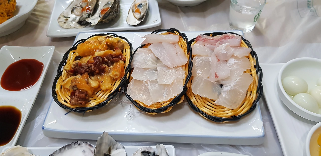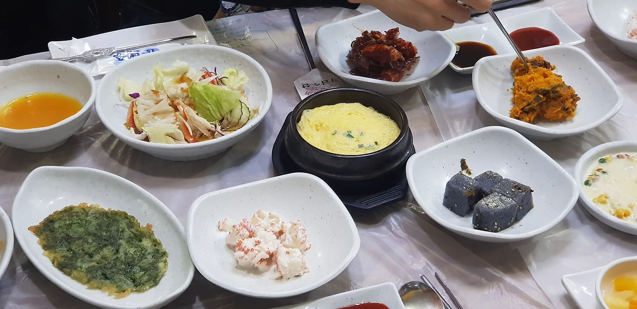 기본찬이 차려졌다. 여느 횟집과 다를 게 없는 메뉴들이다. 여기에 좀 신박한 게 있었다면 좋았을 것 같지만 대게를 먹으러 왔으니 이런 데 눈길을 줄 이유는 없다.