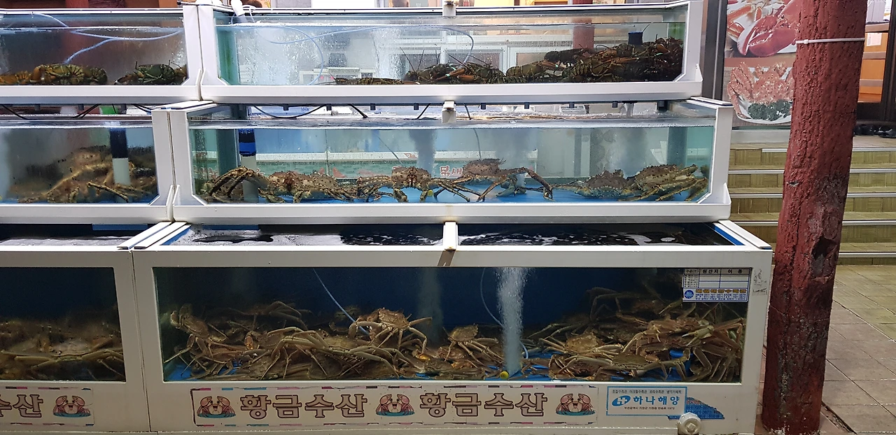 수족관 속 싱싱한 대게를 구경하고 있는데 어찌 된 일인지 나를 향해 기어 왔다. 어쩌면 대게가 나를 구경하는 건가 싶기도 했다.