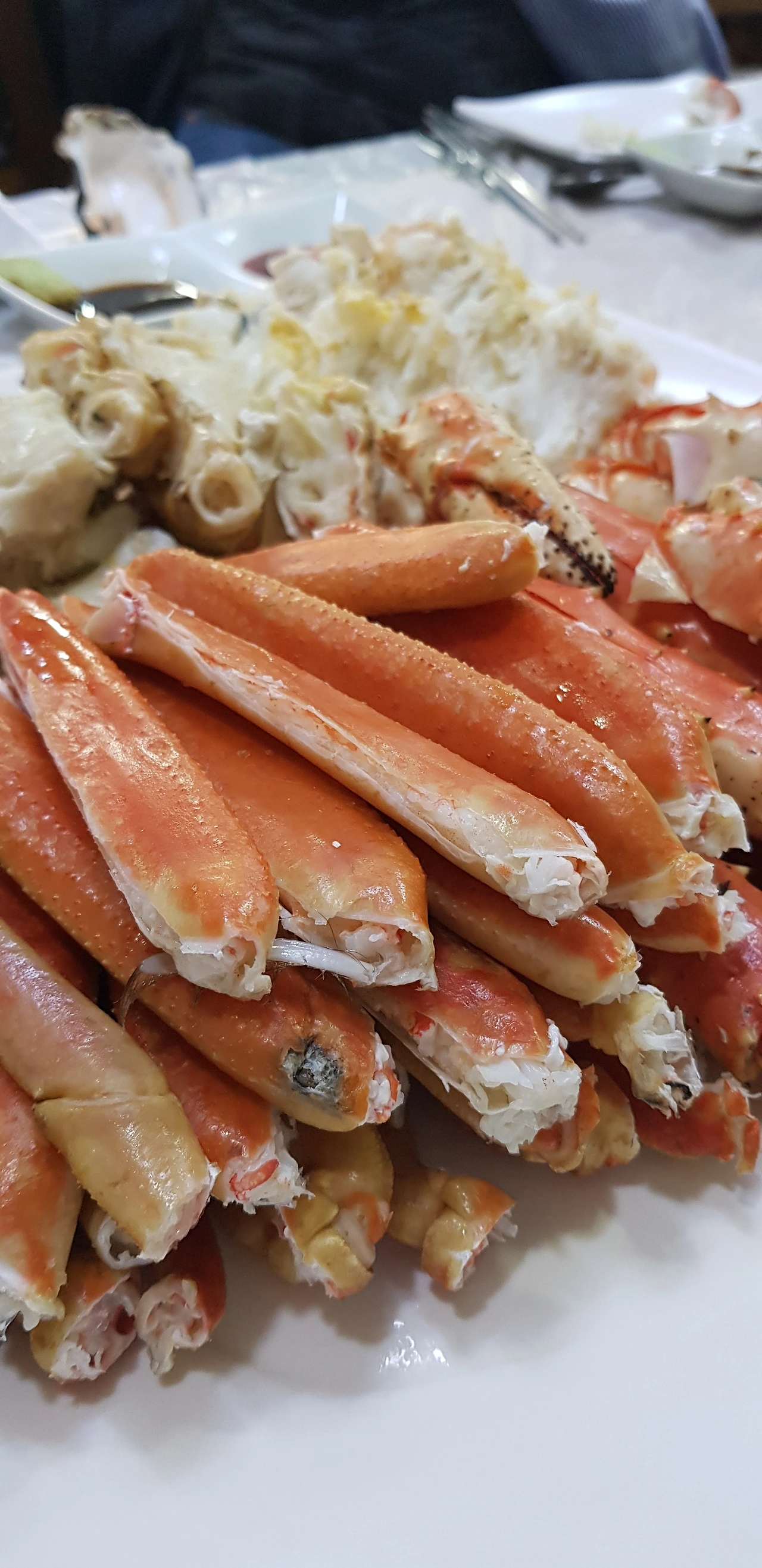 사진을 찍으며 뜯으며 먹으며 마시며 아주 정신이 없다. 아마 삼십 분 정도 대게 살을 먹는 동안 말을 잃었거나 술잔 비우느라 정신을 쏙 빼놨던 것 같다. 게살 빼먹듯이 말이다.