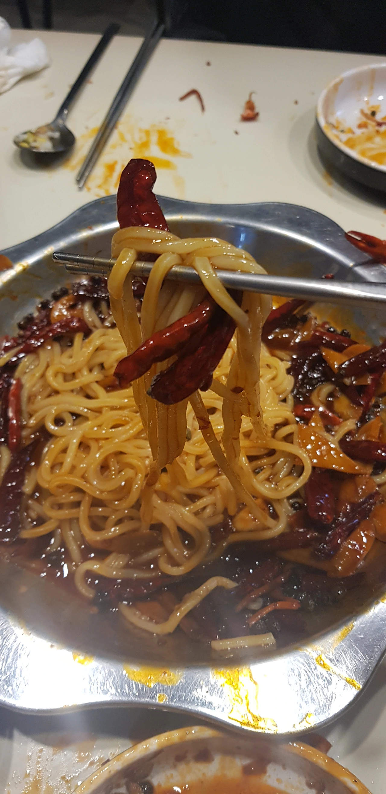 사진이 뒤죽박죽이다. 아마 맨 밑의 사진이 최종 버전이었던 것 같다. '맵게!' '좀 더 맵게!'를 외치며 두 번이나 물러서 세 번째 받은 이것! 이 날은 무슨 컨디션이 그렇게 좋았는지 모르겠는데 매운맛을 그다지 즐기는 편이 아니었음에도 불구하고 최대한 매운맛을 맛보고자 했다. 마지막 버전의 마라룽샤다.