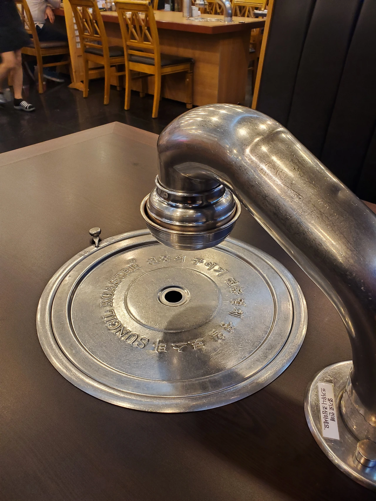 연기 흡기를 테이블 아래로 빼는 구조라 천정 위로 이어진 난잡함이 없어 좋다.