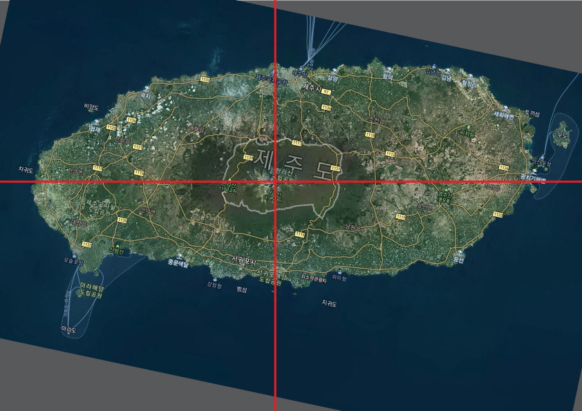 한라산을 중심으로 반시계 방향으로 12도 틀어보면 딱 이렇게 된다. 분명히 동서남북 개념이 있음에도 불구하고 머릿속에는 이렇게 자리 잡고 있는 것이다.
