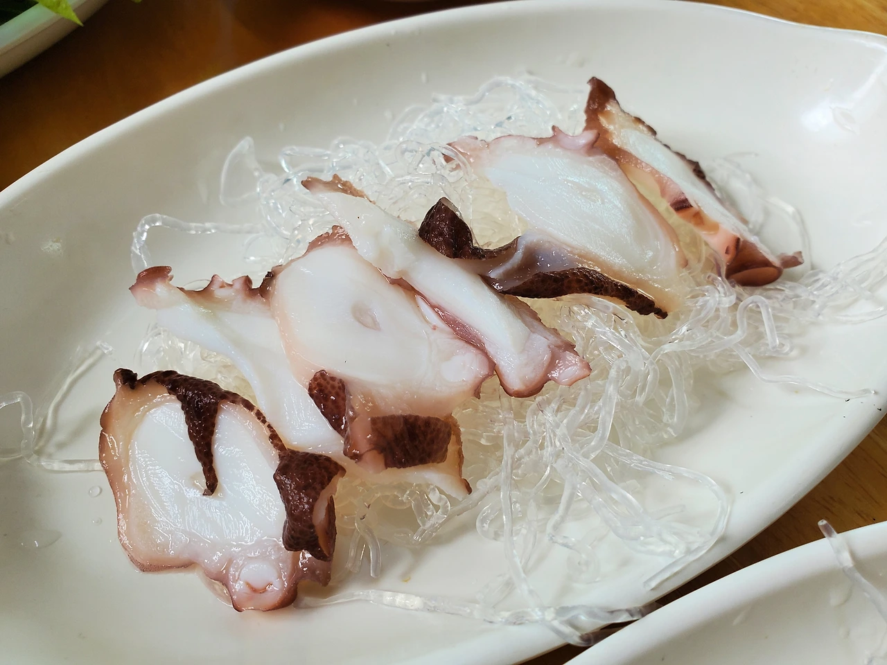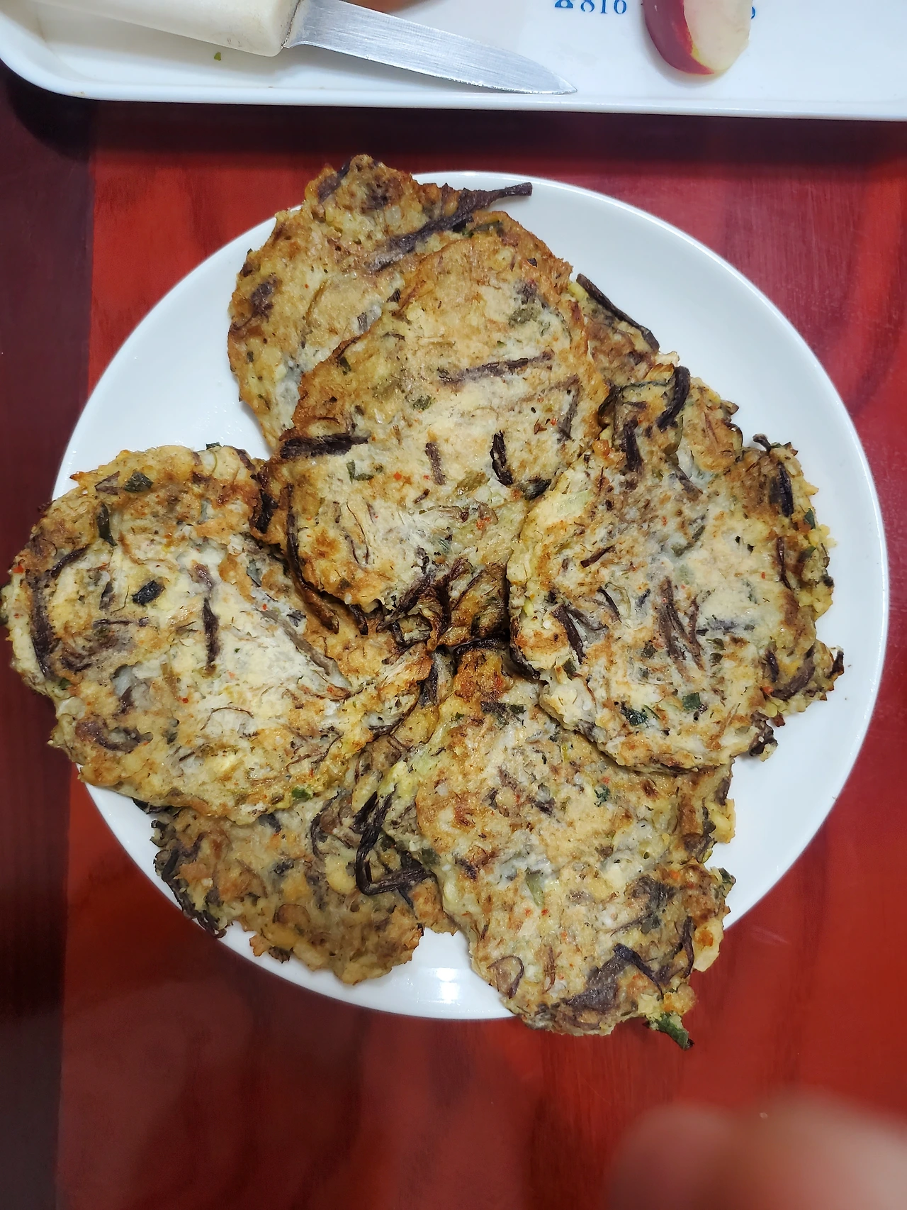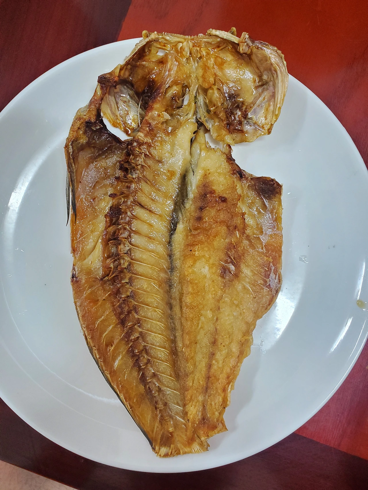 저녁 식사는 집에서 엄마 밥을 먹기로 했다. 그렇지 않아도 우리 주려고 메밀 이삭을 주워다 메밀묵까지 쑤어 놓으셨는데 어찌나 고소하고 맛나던지 지금까지 먹었던 메밀묵은 가짜였단 생각이 들었다. 메밀 맛집들 중 최애 하는 몇 곳이 있었는데 당장 엄마의 메밀묵이 맨 위에 랭크되고 말았다. 나는 집에 오면 자주 먹는 옥돔이지만 이번 휴가에 합류한 직장 동료는 우리 집 밥상에 정말 반해버렸다.