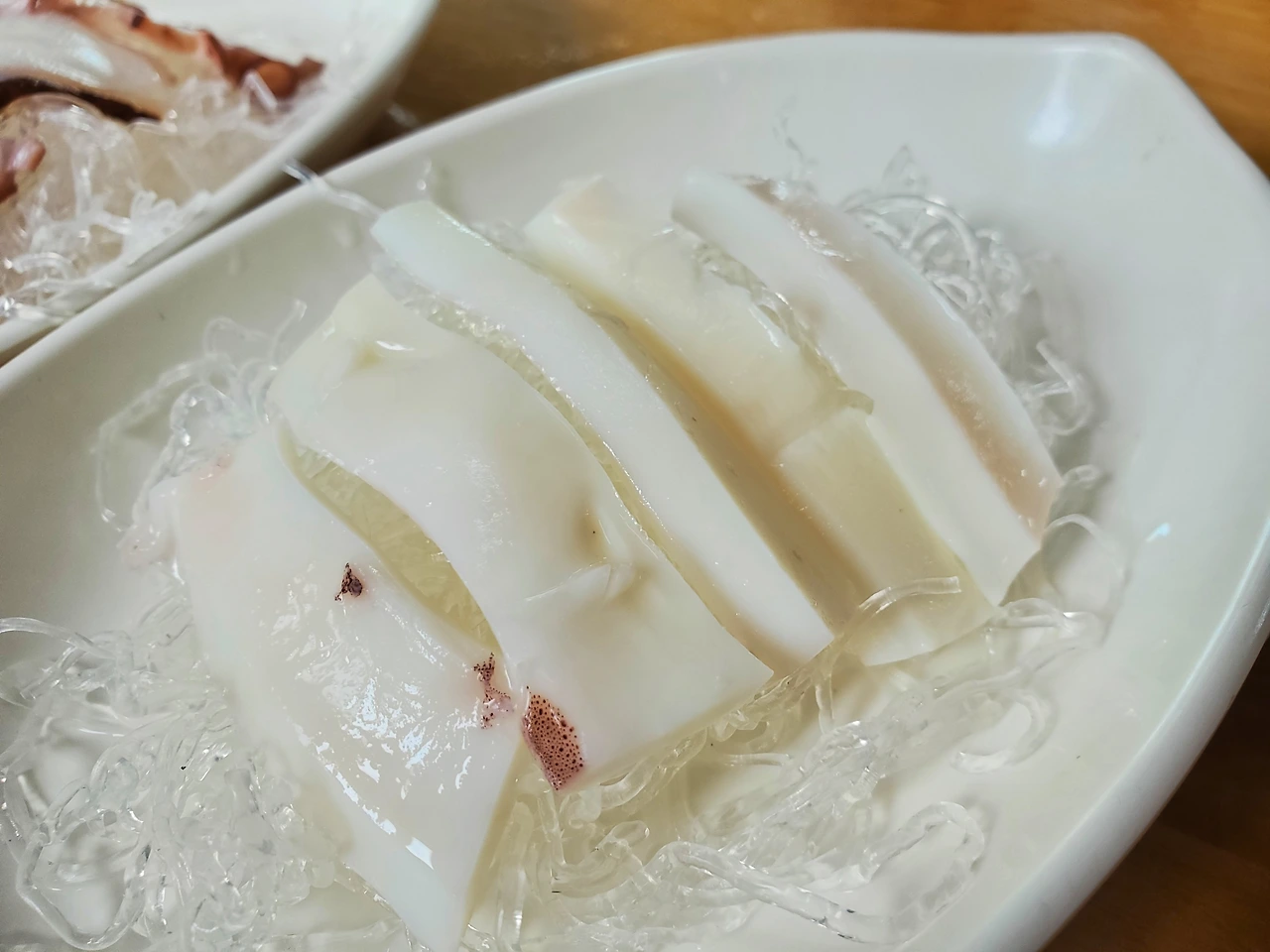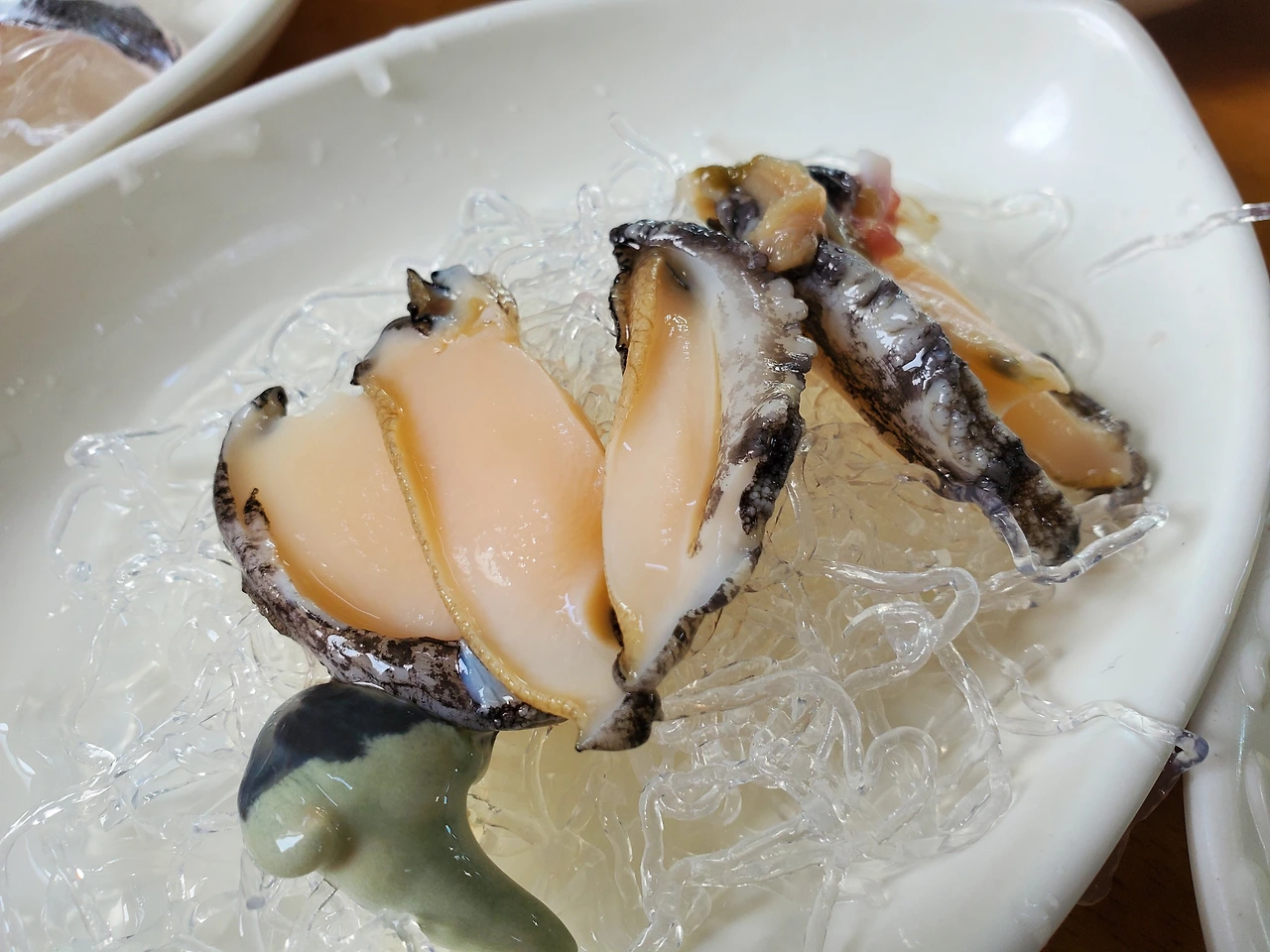 요즘 관광객이 많아서 그런지 몰라도 평소에 주던 해산물들 중 다량이 빠져 있었다. 낚시에 실패하고 돌아온 우리에게 이러시면 안 되는데~ ㅎㅎ 어쨌거나 기름진 참돔회, 광어회, 갈치회로 점심 식사를 해결했다.