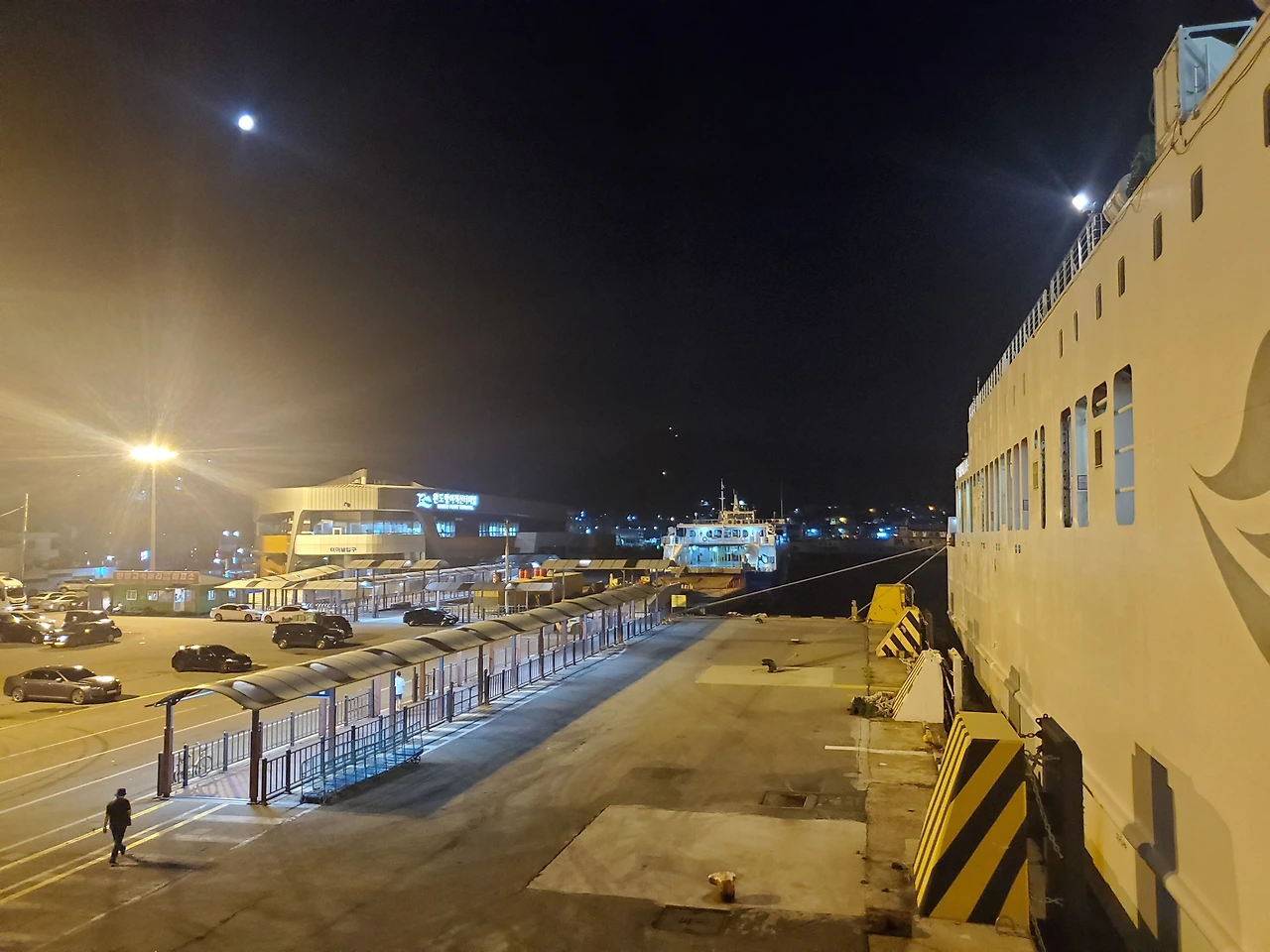 수요일에 퇴근해서 바로 출발하기로 했다. 배는 새벽 2시 30분 출항이다. 안내 문자에는 1시간 30분 전에 차량을 선적하라고 했다. 배에 차를 싣고 다니는 게 초행은 아니라 썩 부담은 없었다. 다만 길이 막히거나 하는 불상사가 날 것을 대비해 한 시간 정도 여유를 두고 출발했다. 그렇게 해서 도착한 게 새벽 1시 정도 된 시간. 나는 혼자 말뚝으로 핸들을 잡았고 주유하는 것을 포함 휴게소에 두 번 멈춰 섰다.
