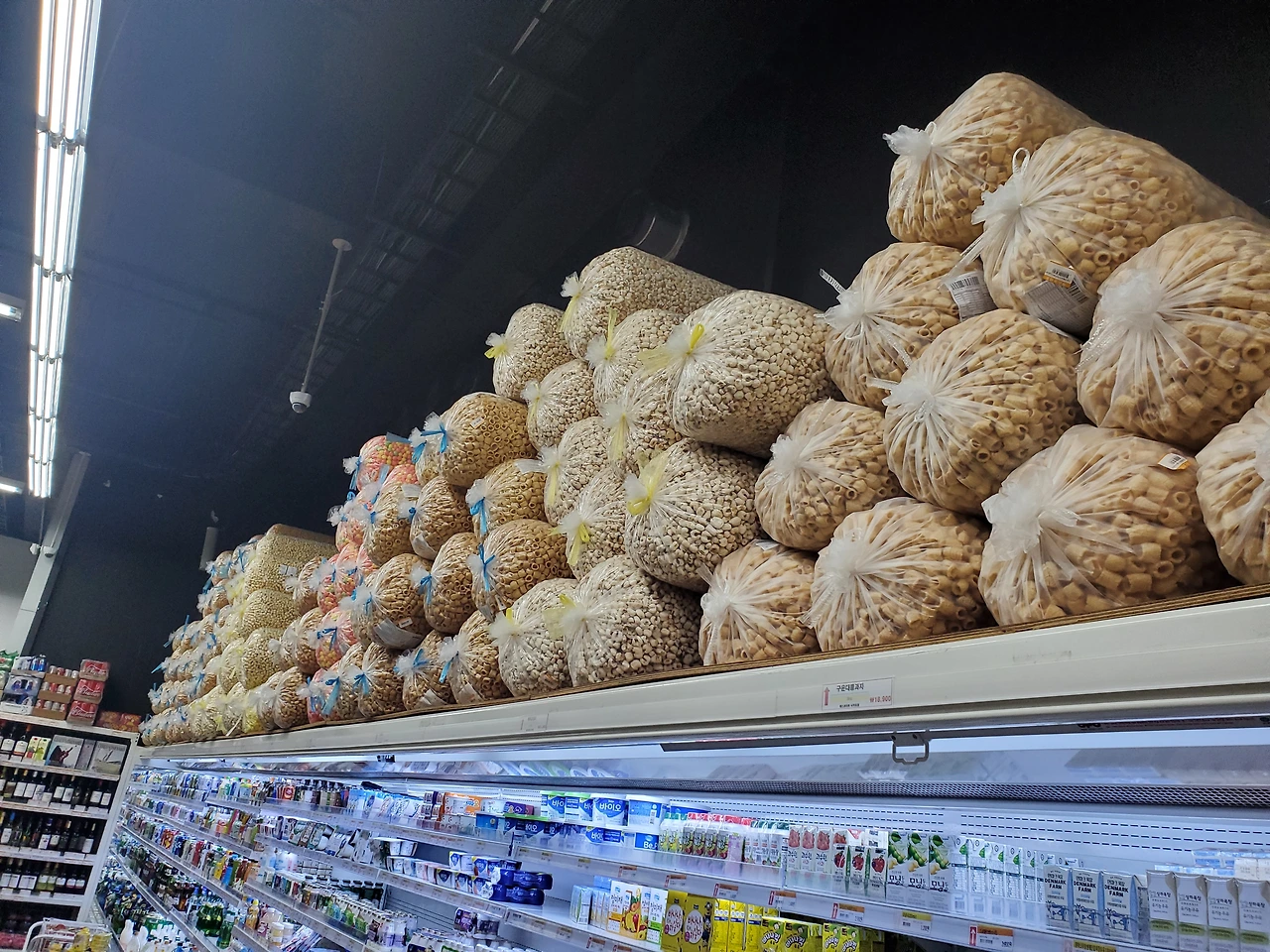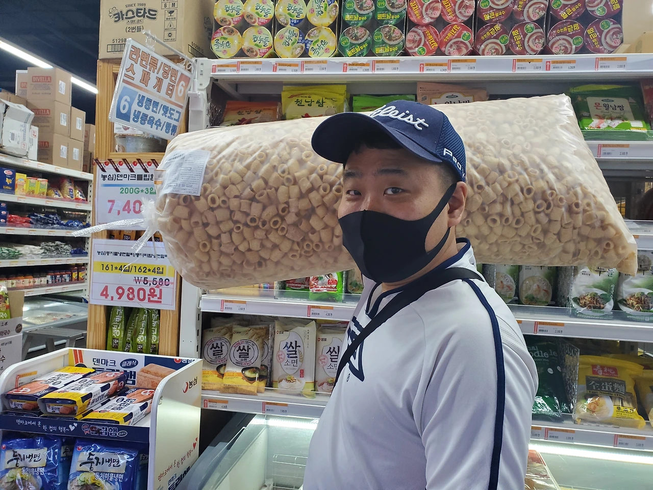 카트를 밀며 이런저런 식료품을 구입했는데 우리가 성산에서 한 시간 정도를 달려 제스코까지 간 이유는 바로 이 강냉이 때문이다. 이거 한 봉지면 엄마가 동네분들과 나눠 먹어도 한참을 먹을 수 있다는 어르신들의 요긴한 간식인 거다.