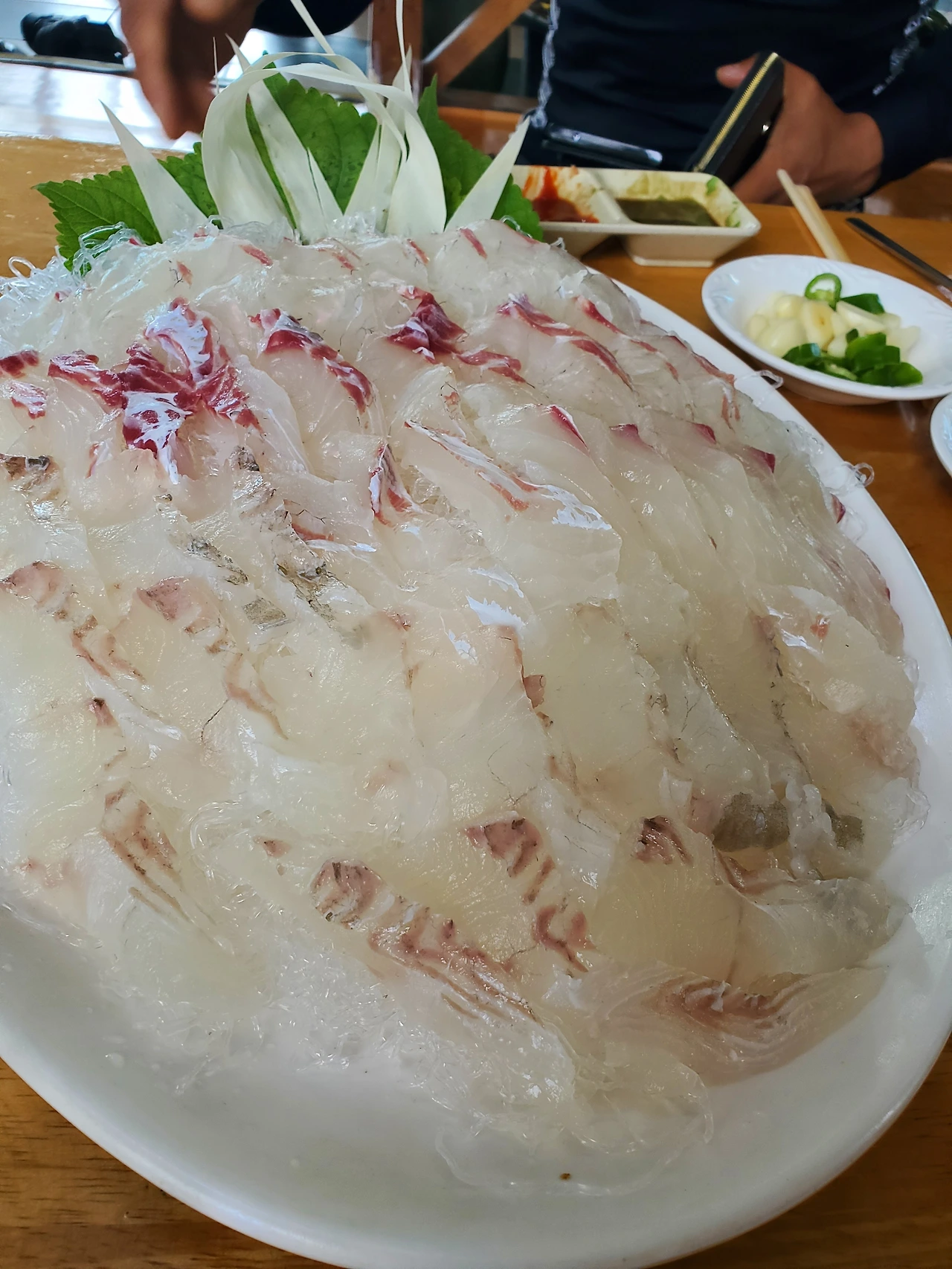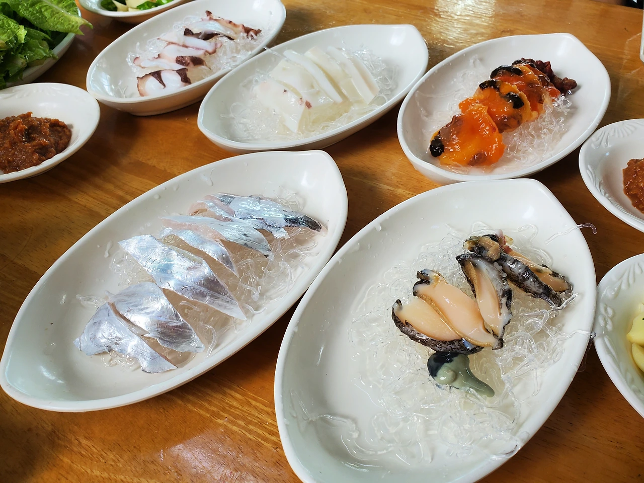 타프와 릴랙스 체어 등 장비를 접어 차에 싣고 하도리로 향했다. 단골집 중 한 곳인 별방촌이 목적지다. 오늘은 직접 잦아서 먹을 수 없는 데 대한 복수의 의미로 회를 사 먹기로 한 것이다.