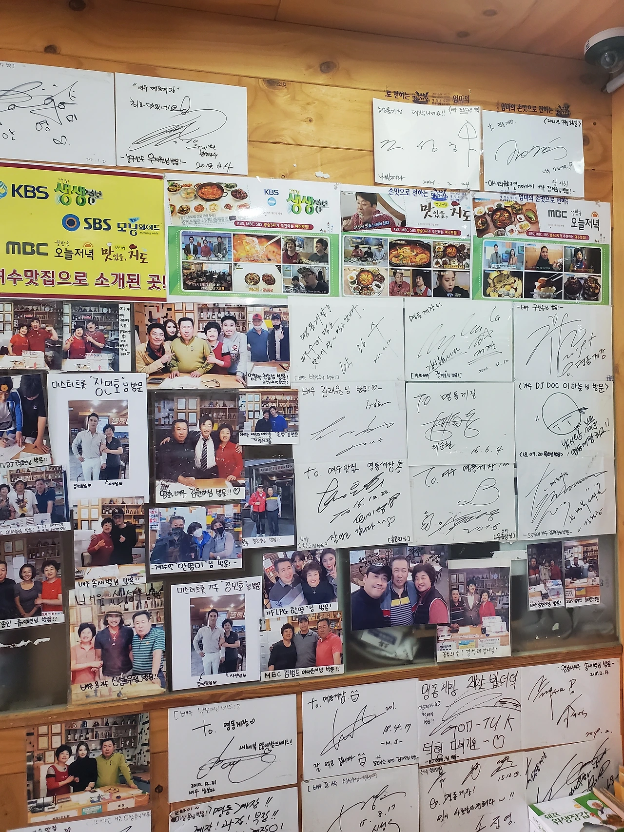 유명하다는 여수의 명동게장에 가서 갈치+게장을 주문했는데 솔직히 말해서 식도락가인 내 입장에서 이 정도 게장은 흔하디 흔하다. 디스하려고 하는 건 아니지만 정말 왜 유명한지 모르겠다. ㅎㅎ 갈치조림은 말할 것도 없고. 갓김치도 서울에서 주문해 먹는 것과 비교해도 수준이 떨어지고 말이다. 적어도 여수에서 먹으면 더 맛있어야 하는 게 정상 아닌가? 딱 하나, 갓으로 담근 물김치 하난 이색적인 맛이었다. 명동게장을 오래전에 다녀왔다던 동행자 역시 고개를 절레절레 흔들었다. 유명세를 탄 후로 음식에 대한 정성이 빠져버린 거다. 어쨌거나 여수에서 여수의 유명 맛집엔 들렀다 왔다. 만족도가 높았다면 사진을 찍고 나의 맛집 리스트에 올릴 만한데 그럴 만한 가치는 없었던 것 같다. 재밌는 건 대기실이 따로 있다는 거다. 얼마나 사람이 많으면... 아무튼 연예인 마케팅으로 성공한 식당인 것으로~