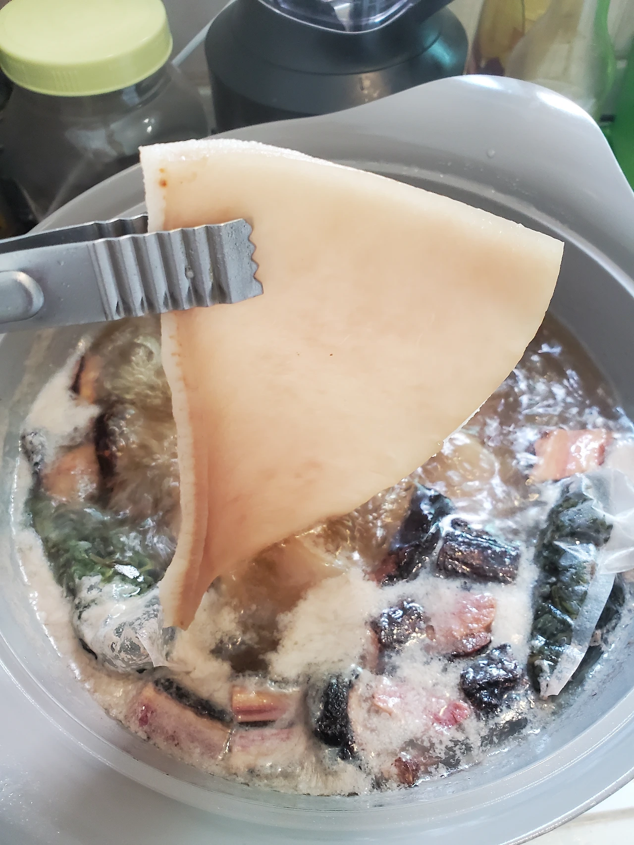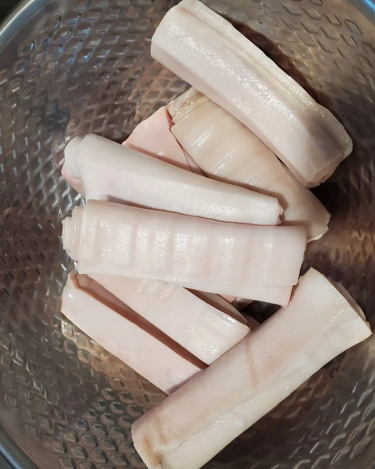 돼지껍데기 한 팩을 꺼내 일단 폴폴 삶아내는 것부터 시작이다. 이것 역시 처음 해보는 요리라 묘한 호기심이 생겼다. 직접 만들어 먹는 돼지껍데기 요리는 얼마나 맛있을까?