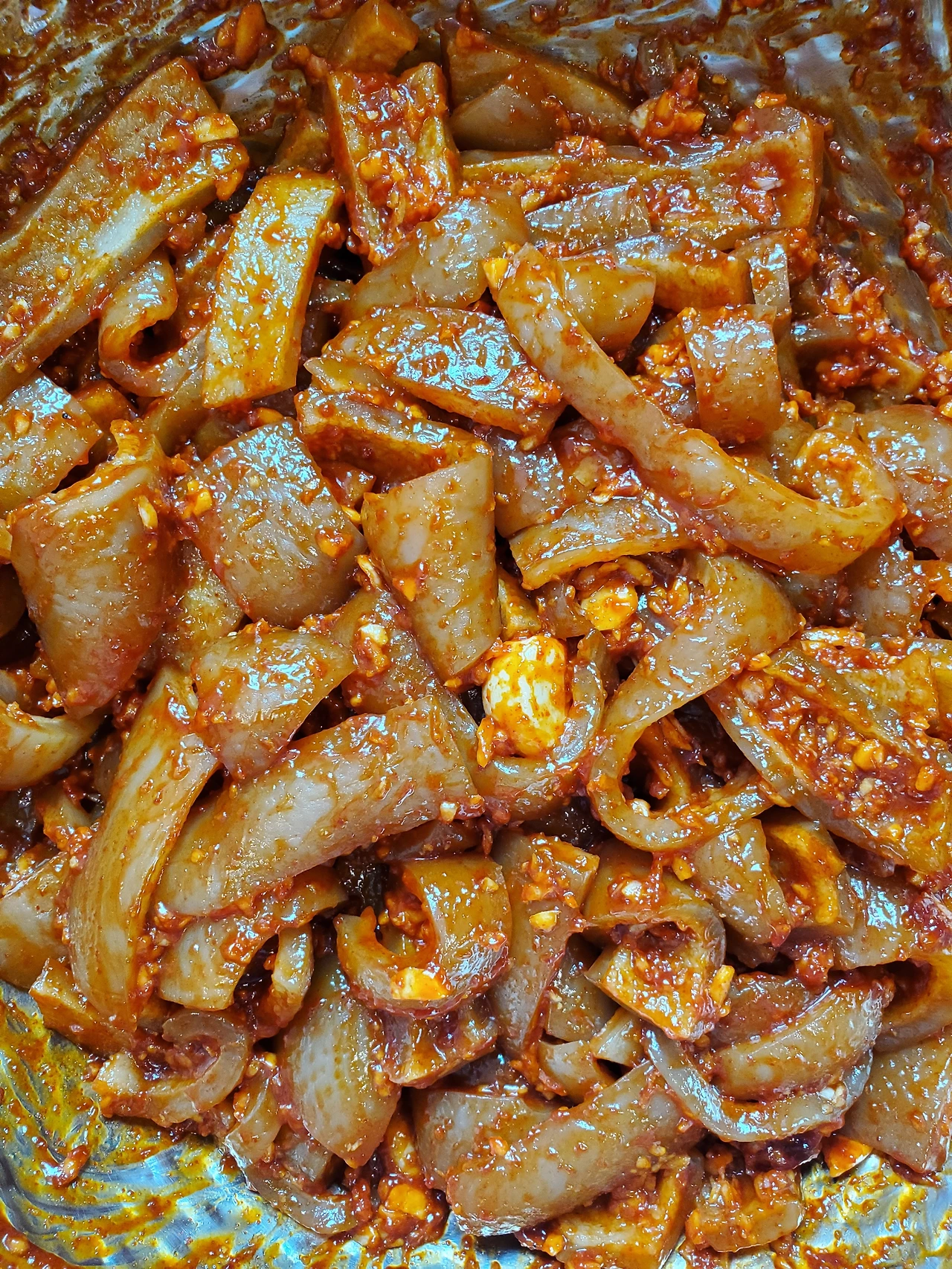 중간 과정의 사진이 없다. 정말 별 거 없이 버무려졌다. 양념이 된 재료는 다음과 같다.