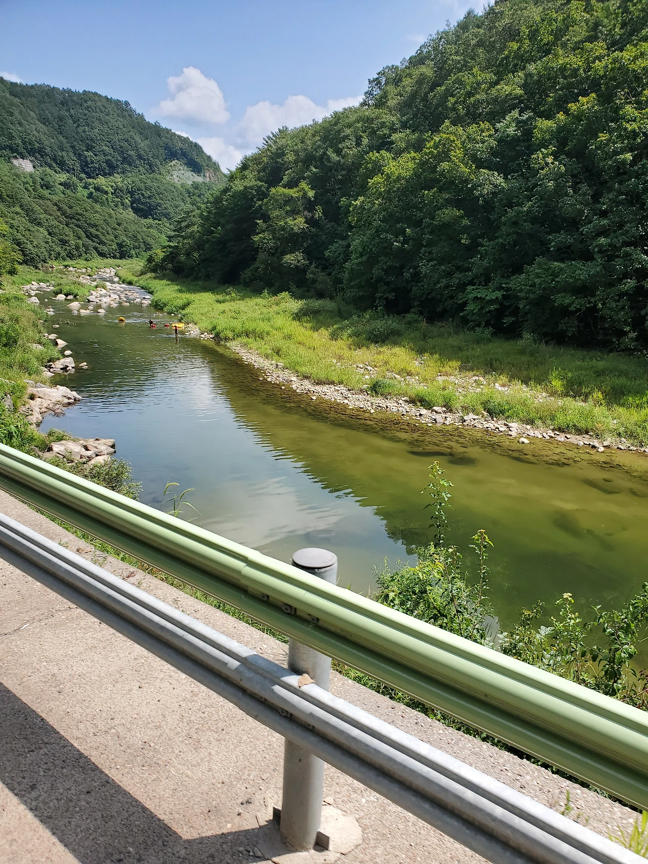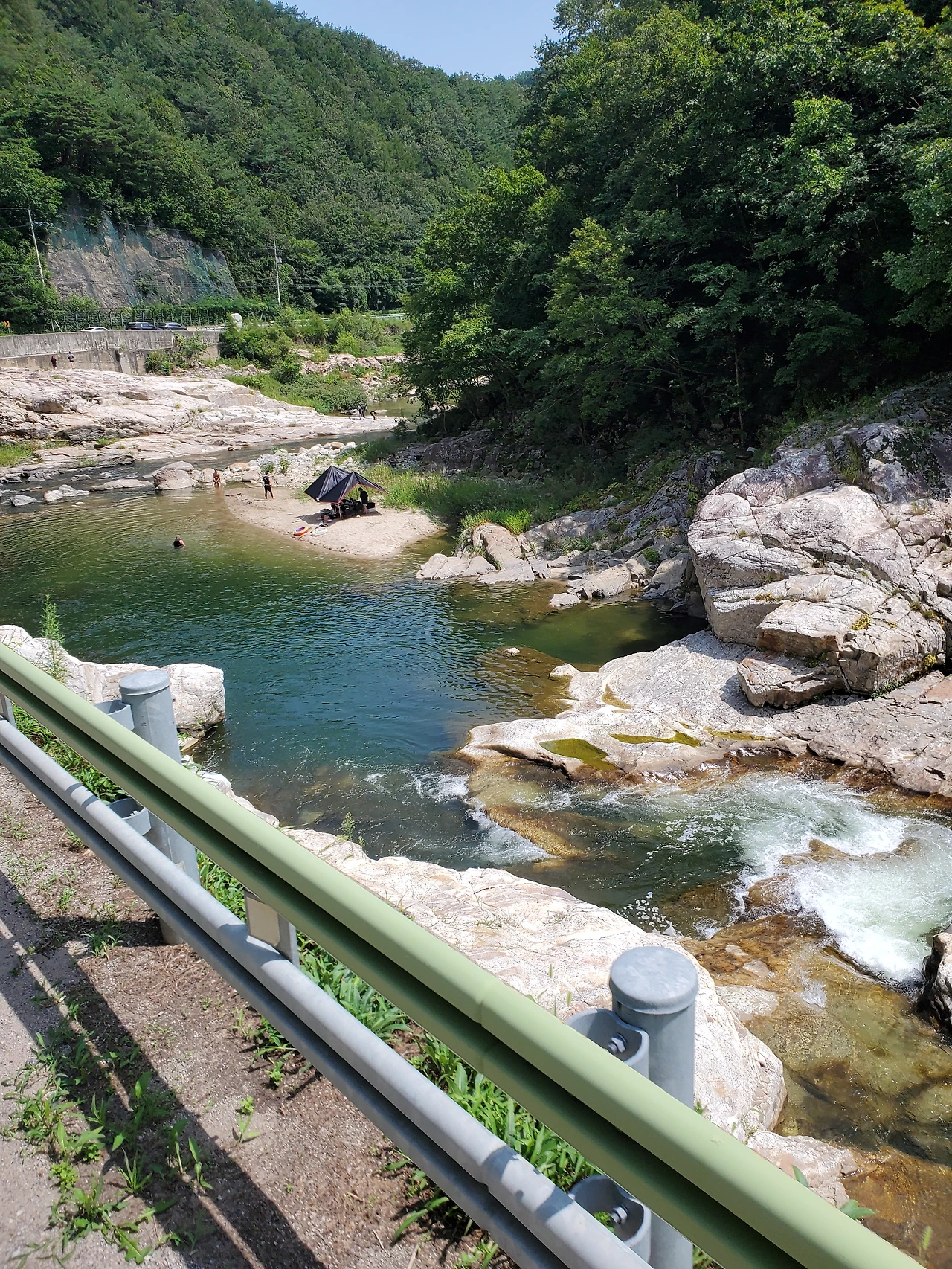 한참을 달리다 보니 도로 옆으로 따라 흐르는 계곡에 사람들이 물놀이를 즐기는 게 보였다. 그 옆을 지나가던 나는 연신 "부럽다~"를 큰소리로 연발했다. 정말 어찌나 부럽던지...