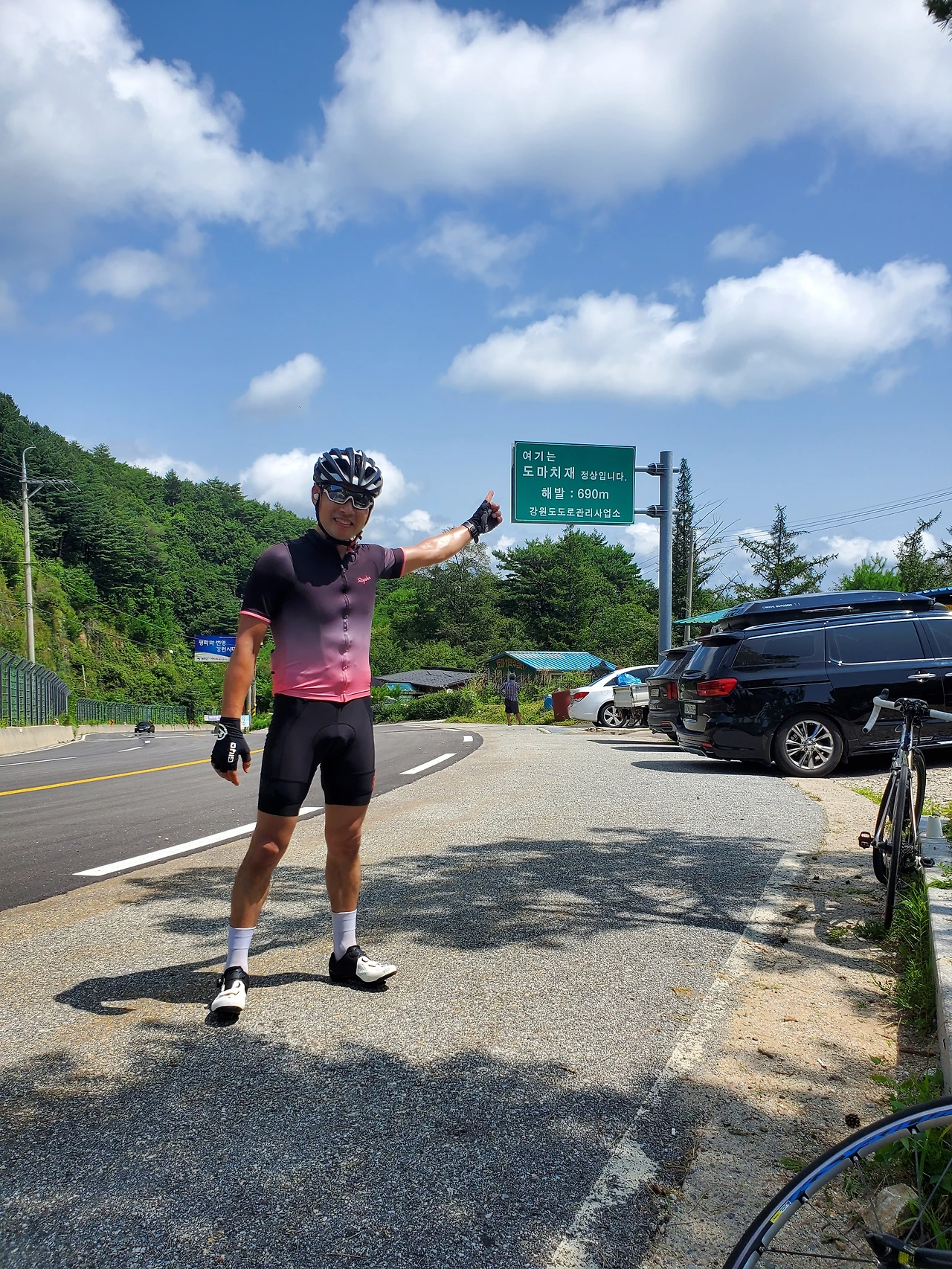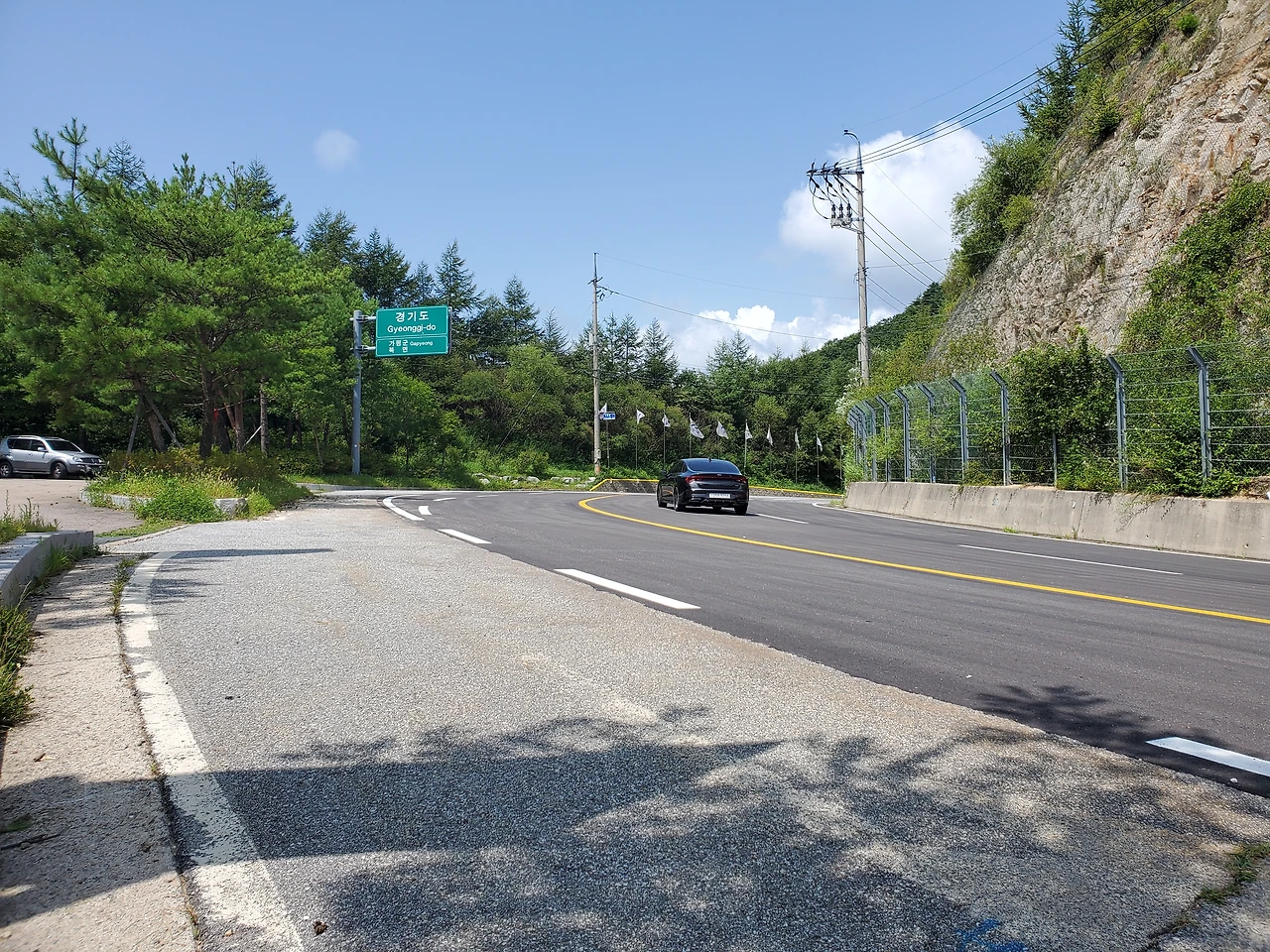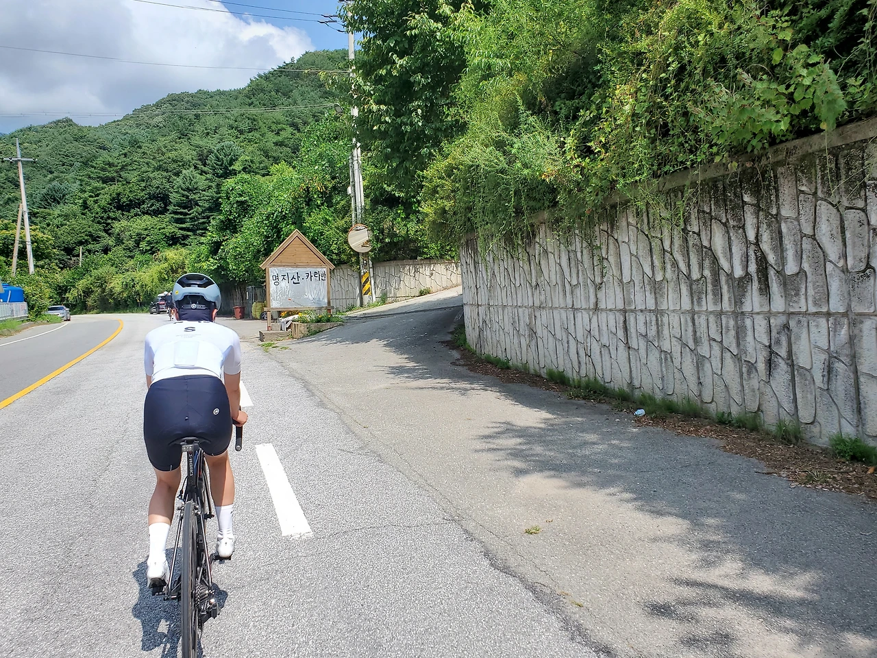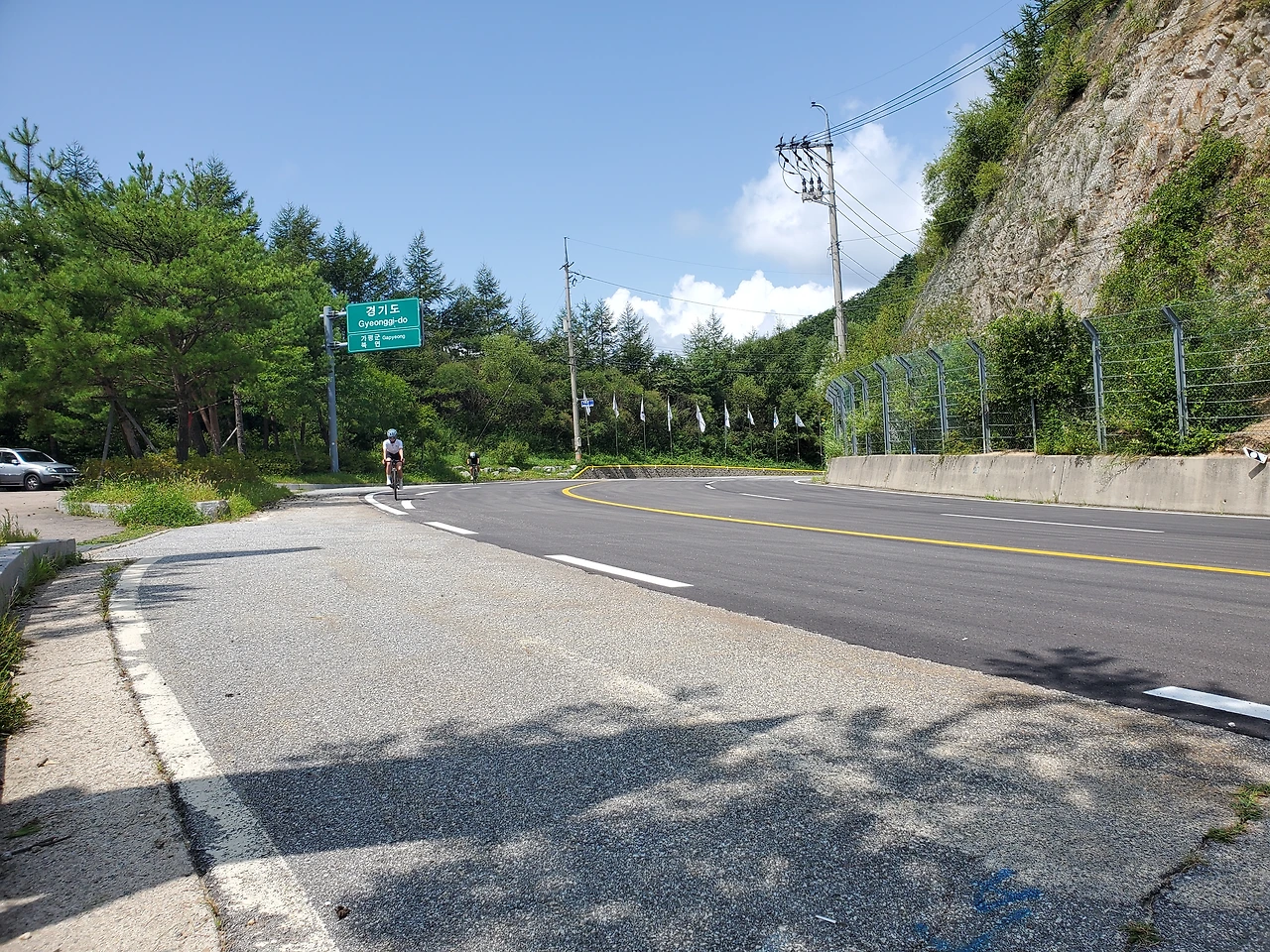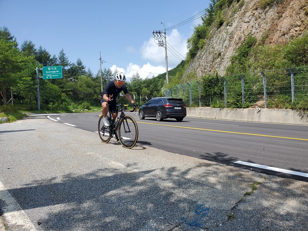 경사도는 겨우 11% 수준인 도마치재, 가평에서 넘어가는 코스는 좀 완만한 편이다. 2년 전 화악산 업힐 갔다가 나도 모르게 도마치재도 넘고 말았던 기억이 있다. 아무튼 12시가 다 되어 기온이 높아진 시간이라 아스팔트는 뜨겁고 숨은 컥컥 막혔다. 그래도 한창때의 여름보다는 덥진 않다. 그다지 길지 않은 도마치재 구간을 마치고 보니 이젠 어려운 코스는 아예 없다는 걸 인지할 수 있었다.