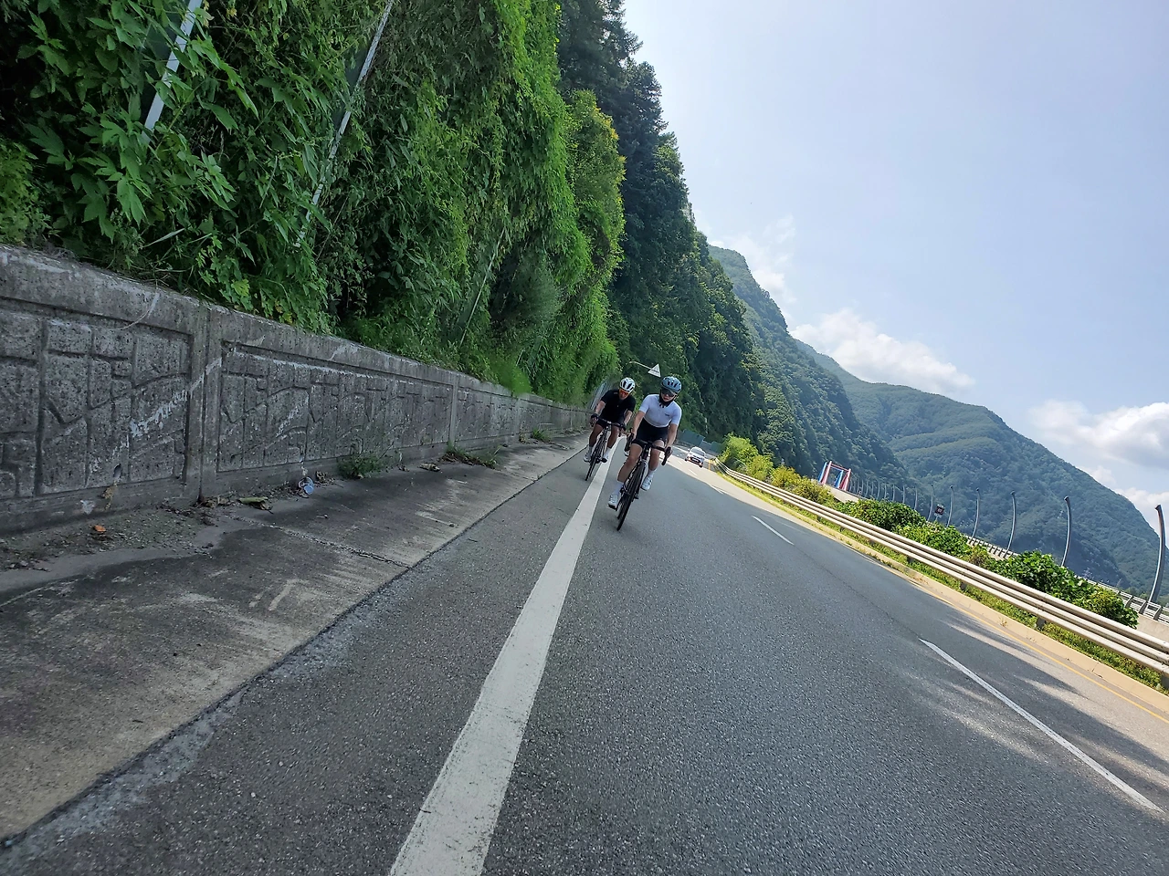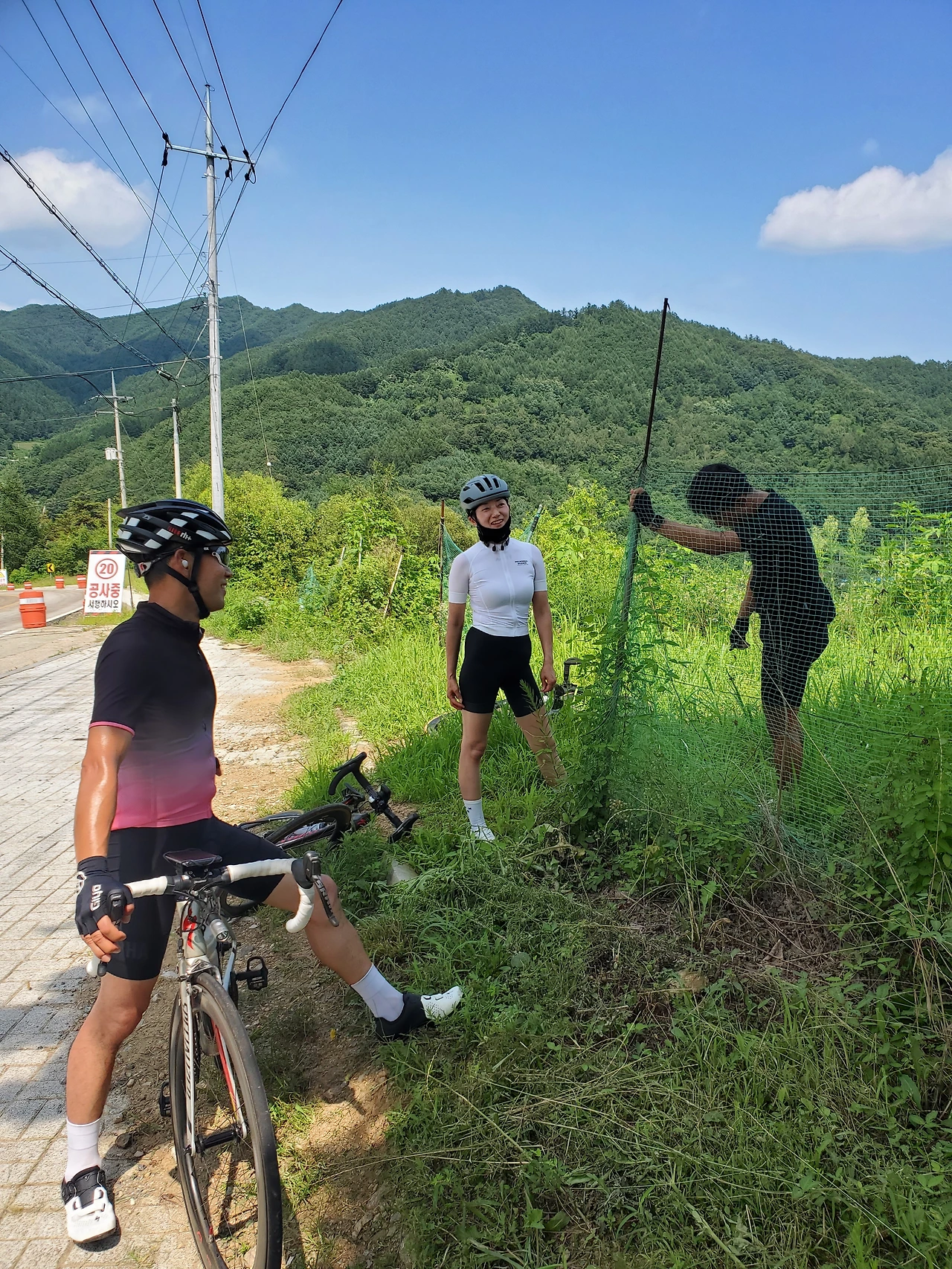 그런데 이쯤 되어 아주 중요한 트러블이 발생하고 말았다. 내 자전거는 기계식 레버로 작동되는 변속기라 상관없는데 스페셜라이즈드 사의 기함급 모델 S-WORKS를 타는 세 사람 중 무려 두 사람의 변속기에 문제가 발생한 거다. 이제 본격 업힐이 시작되고 있는데...
