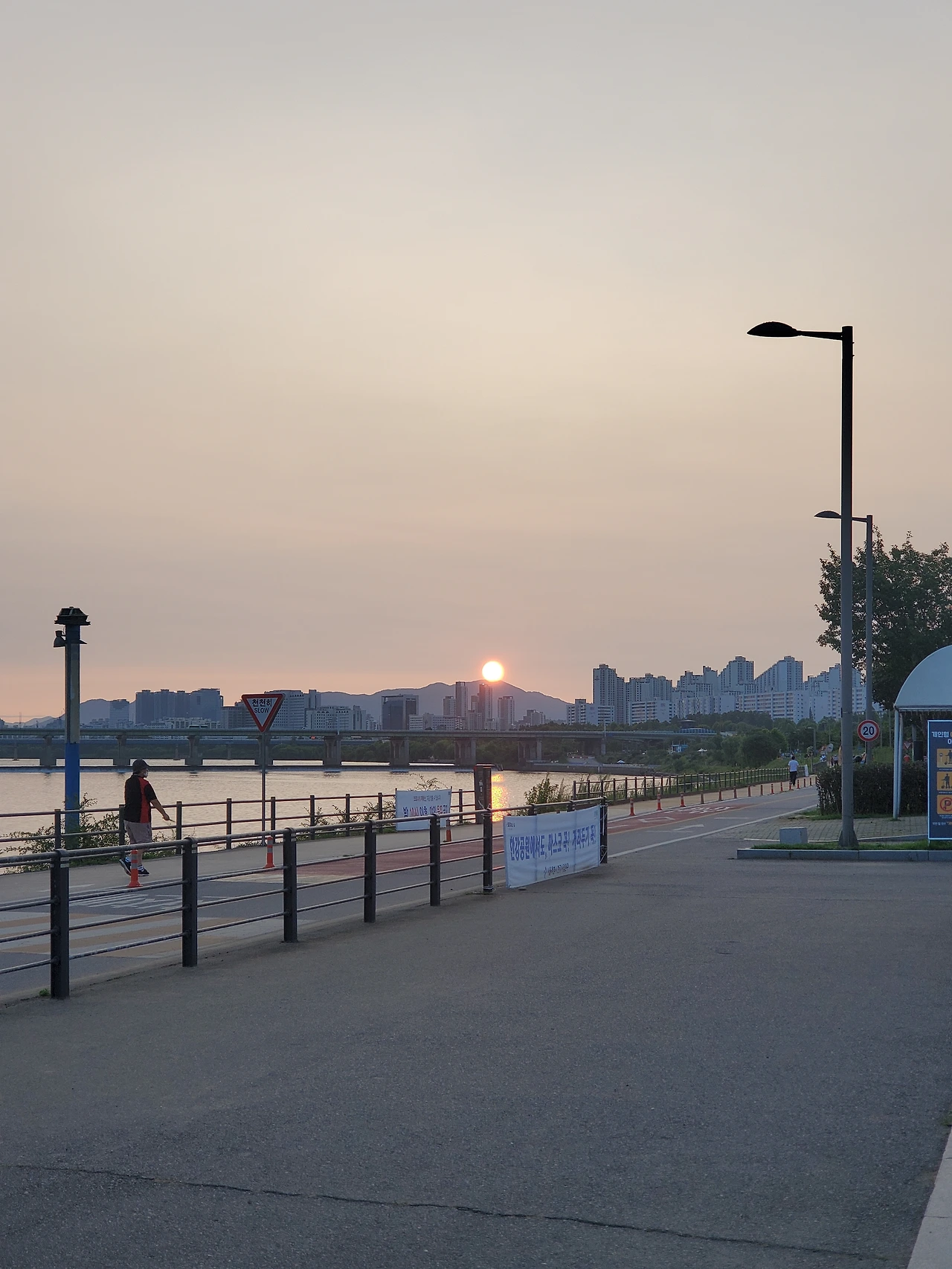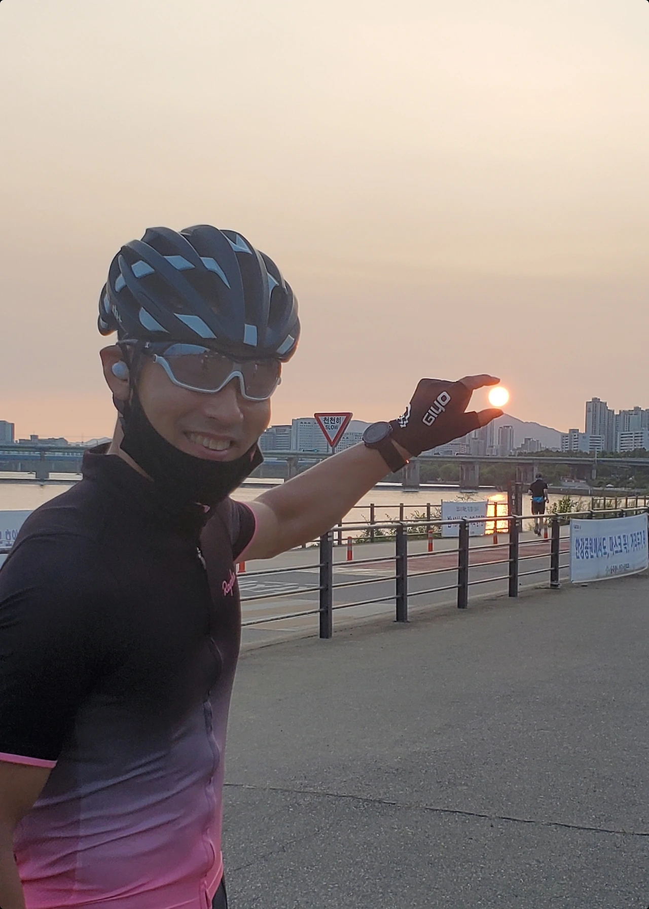 잠실선착장에 도착하니 5시 45분 정도. 이미 한 친구가 차에서 자전거를 내리고 있었고 2분도 채 지나지 않아 사이보그라는 별명을 가진 사부님 도착, 다음으로 한 친구 도착. 6시를 조금 넘기는 시간이 됐고 해는 멀리 산 위에 두둥실 떠오르기 시작했다. 이른 시간임에도 불구하고 꽤 많은 라이더들이 동쪽을 향해 달려가는 게 보였다. 우리가 준비하는 동안 서른 명 정도는 지나간 것 같았다. 아무튼 자전거 동호인들은 의외로 부지런한 사람들이다.