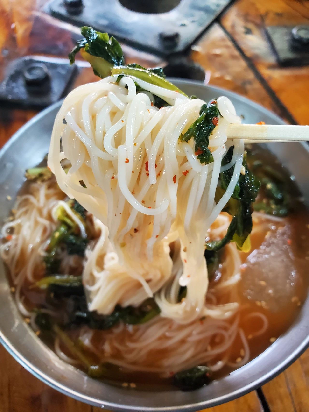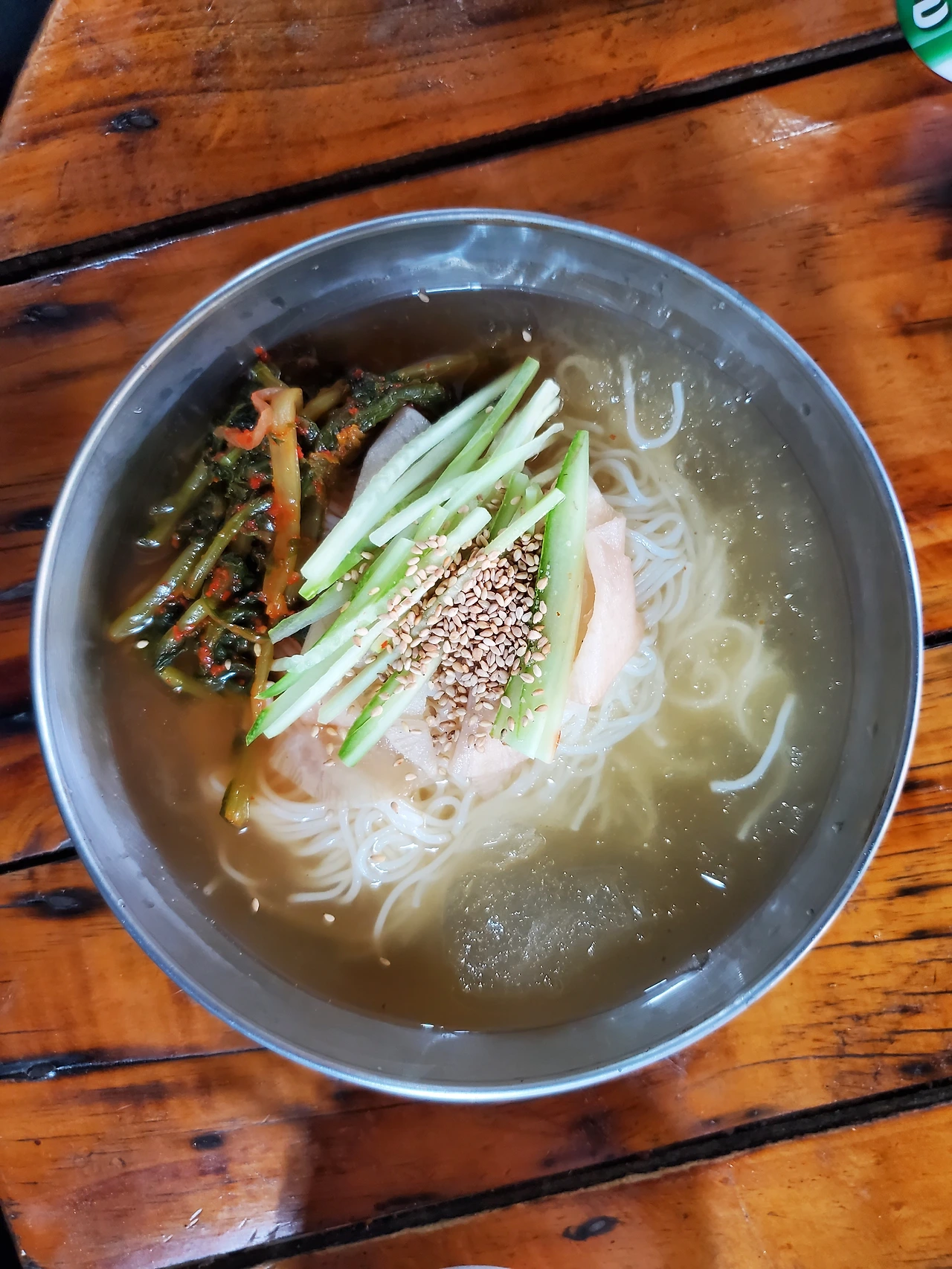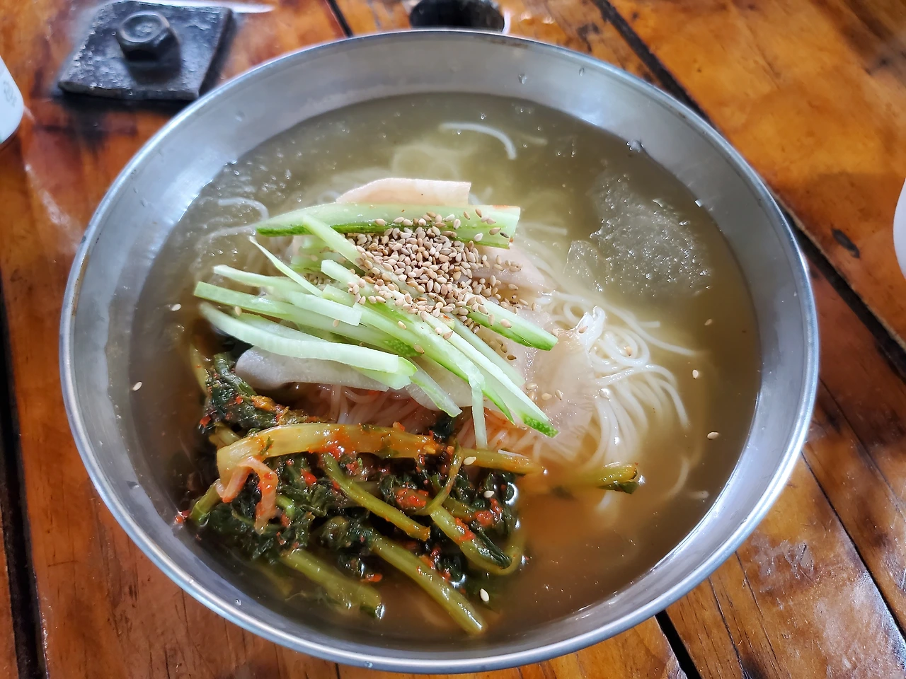 시원한 열무국수는 동치미 국물이 일품이었고 묵은지 김치볶음은 정말 어지간한 식당에서도 맛볼 수 없는 수준에 도달해 있었다. 동치미 국물을 추가로 부탁했고 배가 빵빵해질 때까지 들이붓고 말았다. 여기서 먹은 액체만 2리터는 됐을 것 같다. 그 많은 수분이 다 어디로 날아가는지 화장실에 가지도 않는 걸 보면 신기한 일이다.