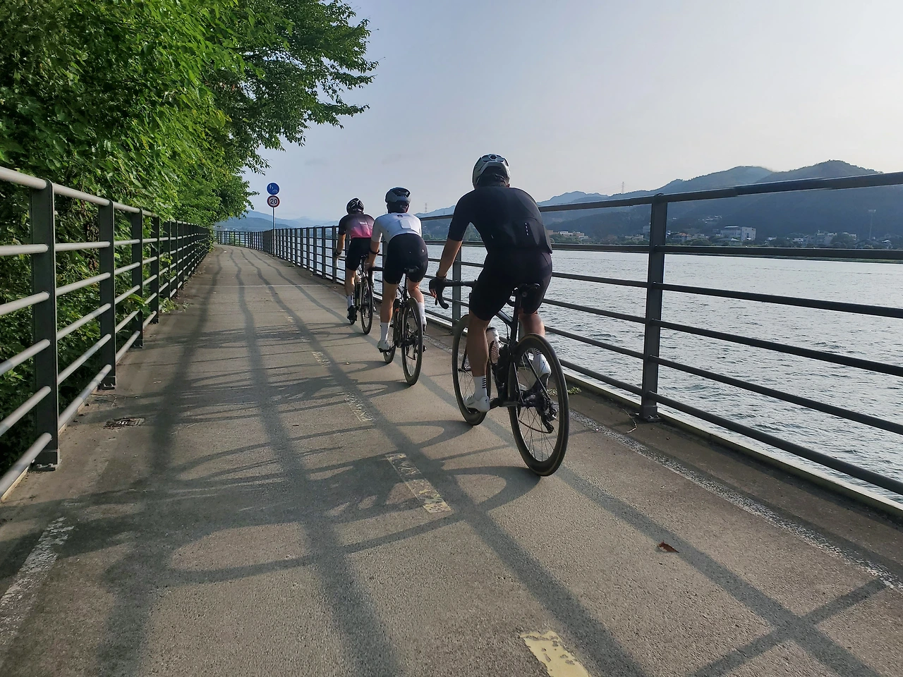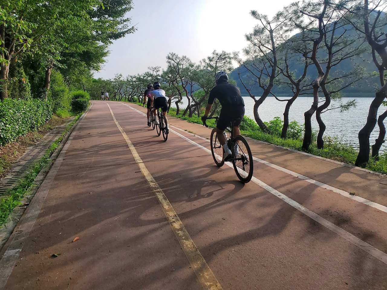 서울을 빠져나오는 길은 너무 익숙해져 버렸다. 퇴근 후 팔당까지 왕복 라이딩을 자주 다녀서일까? 이른 시간에 시작해서 그런지 사람이 없는 편이라고 할 수는 있었지만 이른 시간인데 운동을 나온 사람들이 제법 있었다. 하남에 가까워질수록 사람은 점점 줄어들었고, 우리를 추월해 달려가는 라이더 무리가 몇 있었지만 걱정하지 않기로 했다. 우리는 체력을 비축해야 했기에 30km/h 정도의 속도를 쭉 유지했다. 10km마다 선두를 바꾸는 등 평소엔 하지도 않던 짓을 하고 있었던 거다.
