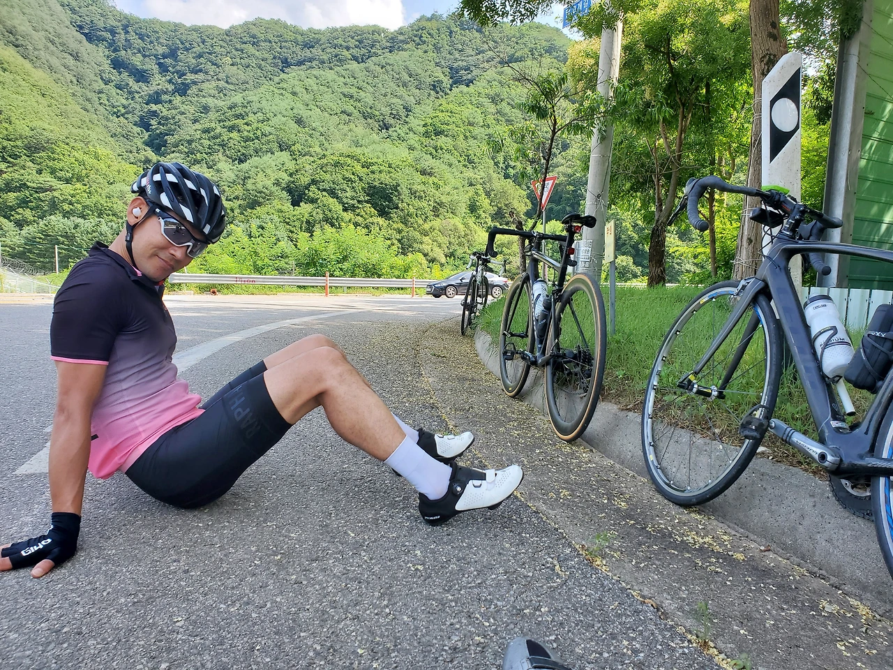 50km 정도 달려 대성리 근처 편의점에 멈춰 선 우리는 아직도 210km 남았다며 숫자의 압박을 느껴야 했다. 그래도 아침 기온이 선선해 페달을 굴리기 좋았고 체력 또한 전혀 문제 되지 않았다.