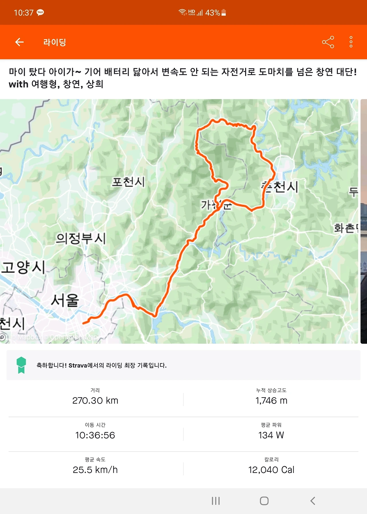 난 집에 도착하니 270.3km를 달렸다. 이 정도면 됐지 뭐~