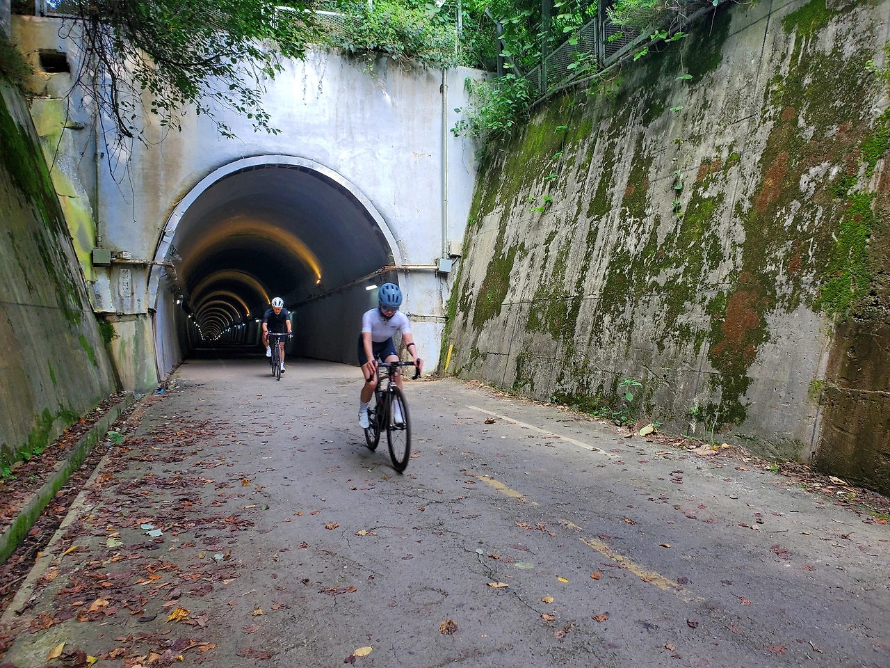 이 터널은 자전거 덕후들에게 유명한 포토존이다. 겨울이면 고드름 때문에 위험한 구간이기도 하다. 난 먼저 앞서 달려가 자전거를 세우고 터널을 빠져나오는 일행들의 사진을 찍어 주었다. 나도 누가 이런 사진 좀 찍어주면 좋으련만. ㅎ