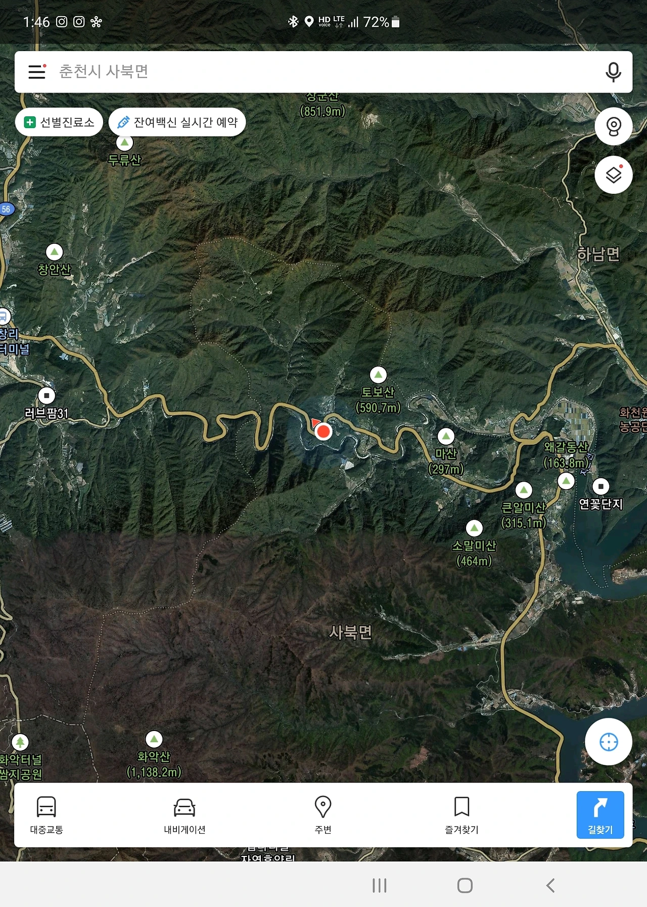 딱 절반 정도 왔을 때 스마트폰 지도에서 캡처해둔 것 같다. 130km 달려온 거다. 사실 먼 거리는 아닌데 업힐도 있고 더운 날씨 때문에 멀게 느껴졌을 수도 있다. 게다가 총 거리 260km라는 숫자의 압박 때문이었던 거다. 어쨌거나 절반 왔다. 30km만 더 가면 춘천이고, 춘천에서 100km만 달리면 서울이다. 춘천에서 서울까지는 약한 다운힐이니 체력이 떨어져 있다 하더라도 무리 없이 달릴 수 있다.