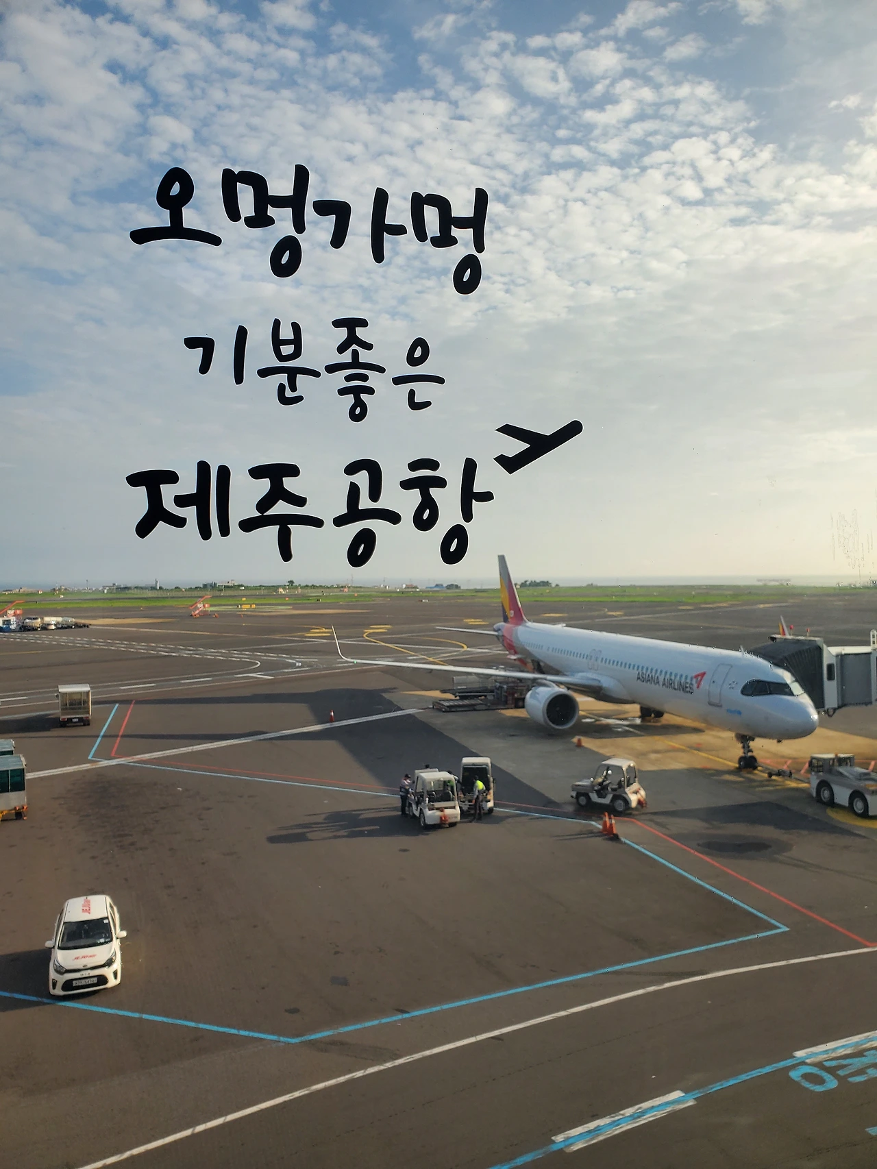 초스피드로 제주도 업무를 마치고 돌아온 티를 내려고 공항에서 사진 한 장 촬영해 봤다. 왠지 엽서 같은 느낌의 사진이다. 일찍 움직여서 그랬을까? 면세점에 들러 이것저것 구입하고 다시 구름을 뚫고 서울로 돌아왔다. 11시에 사무실에서 중요한 미팅이 있어 서둘러야만 했다. 그리하여 사무실 복귀한 시간이 10시 50분. 9호선을 타고 강남까지 정말 빨리도 왔다.