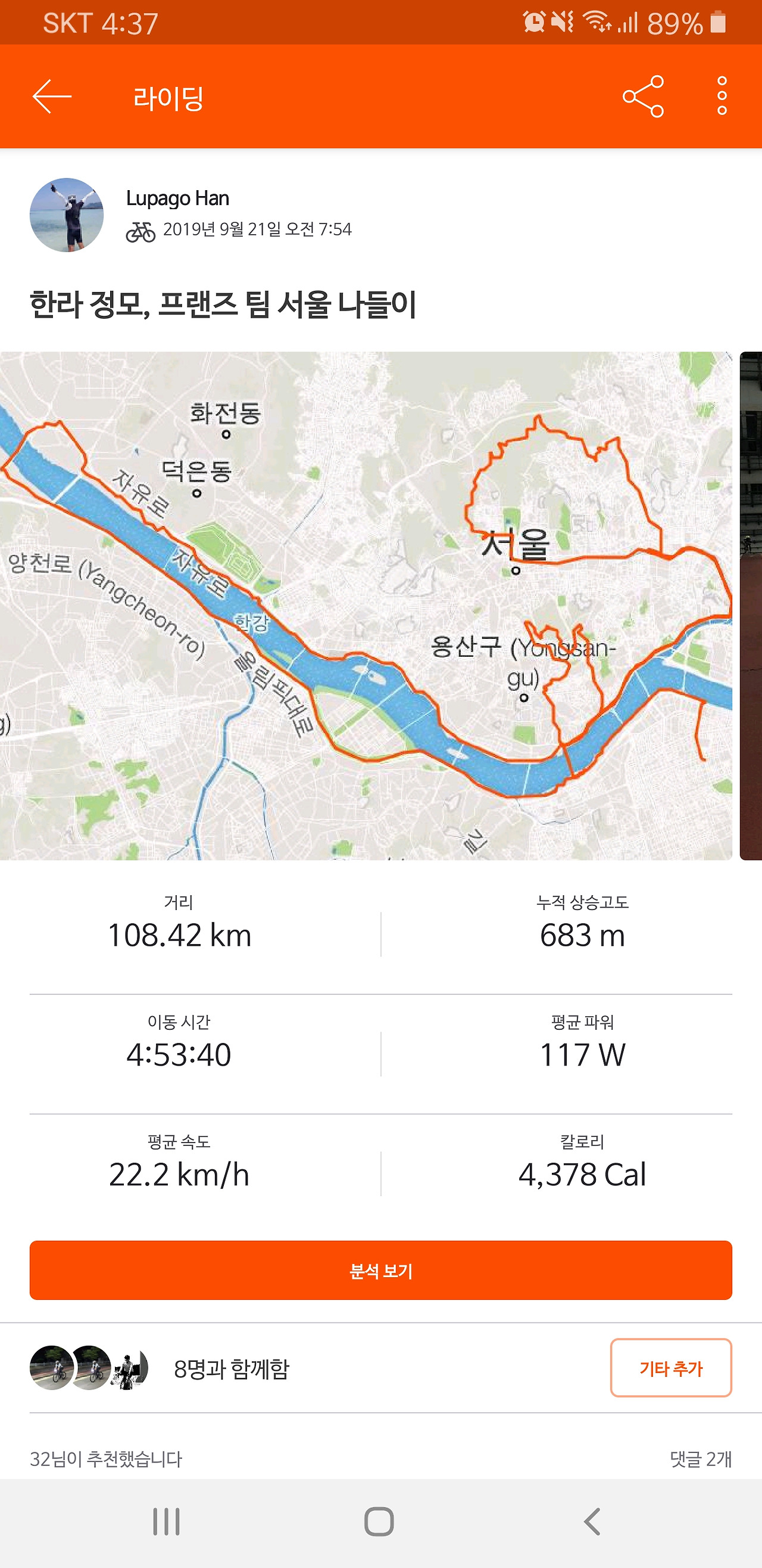 아무튼 이틀 동안 운동 하나는 열심히 한 듯해서 만족도 높은 라이딩이었다.